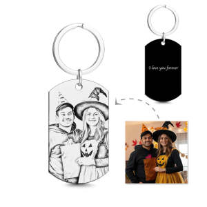 Photo Engraved Tag Key Chain With Engraving Black Halloween Gifts50% OFF -