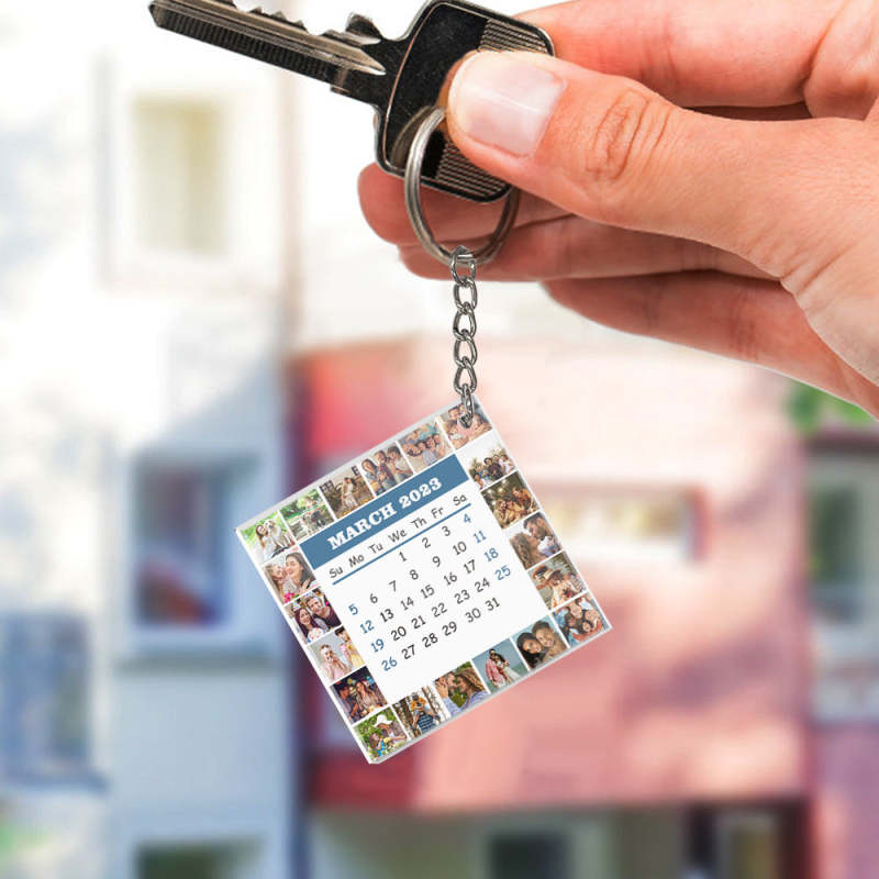 20 Photo Collage Blue & White 2023 Year Calendar Keychain