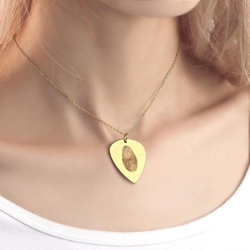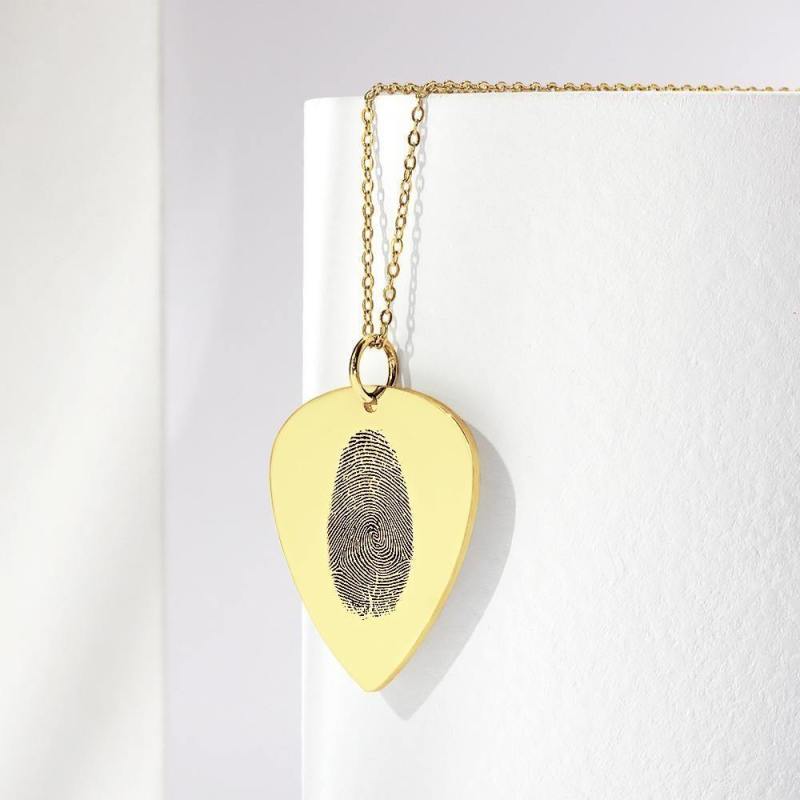 Actual Fingerprint Necklace Guitar Pick Necklace Memorial Gift for Him 14k Gold Plated