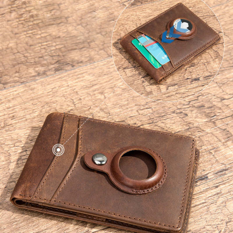 Airtag Men's Wallet Vintage Card Holder Leather Money Clip
