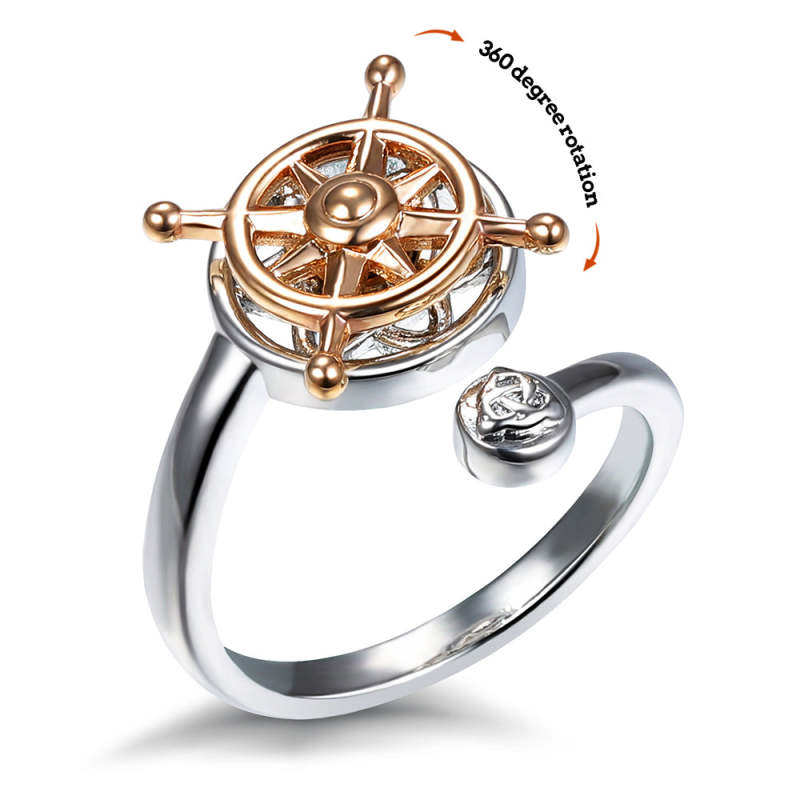 Anxiety Ring Decompression Ring Anti-Anxiety Relief Adjustable Rudder Ring Jewelry Gift