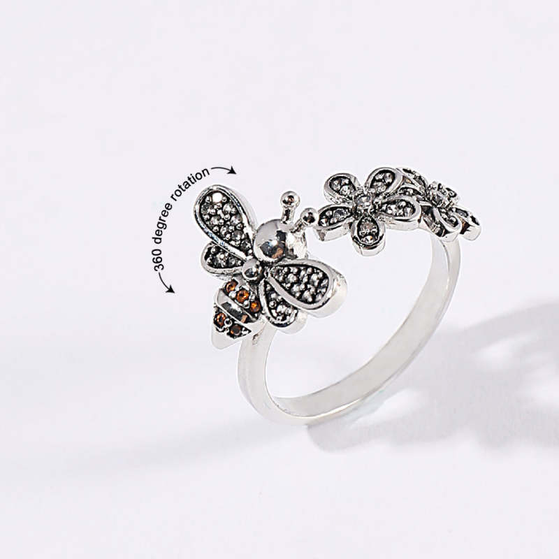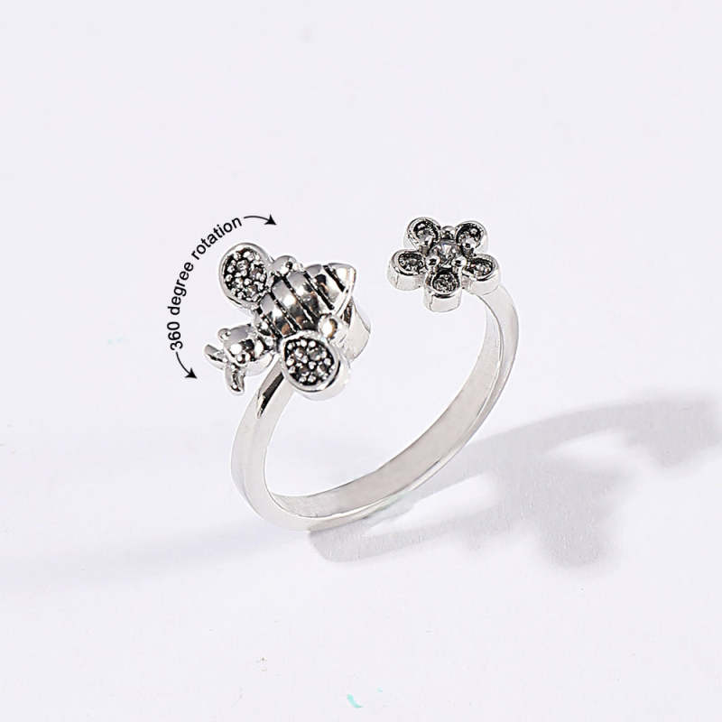 Bee Daisy Adjustable Fidget Ring for Anxiety Rotating Anxiety Ring Jewelry Gift for Her