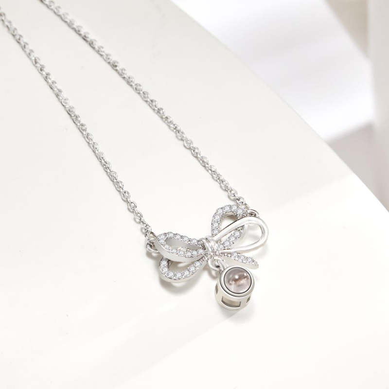Bow Photo Projection Necklace Customized Elegant Picture Inside Jewelry Valentine's Day Gifts