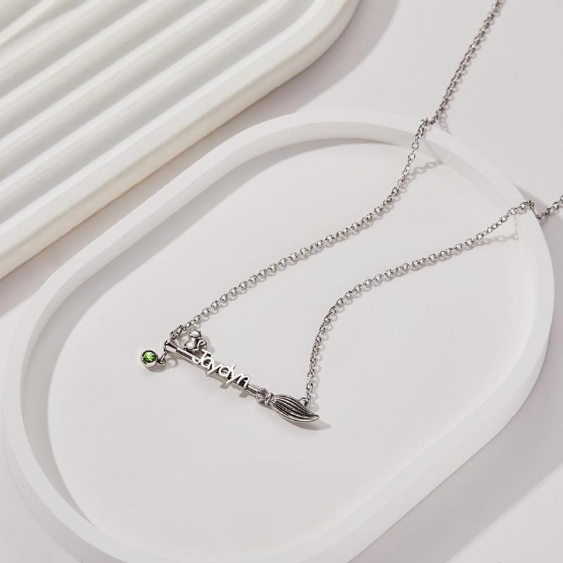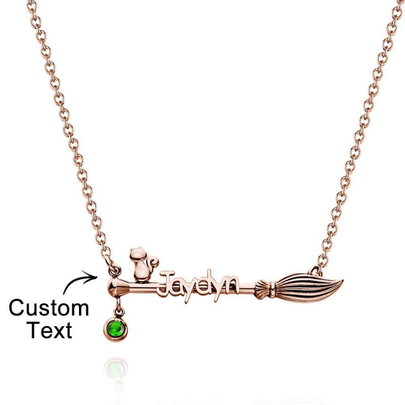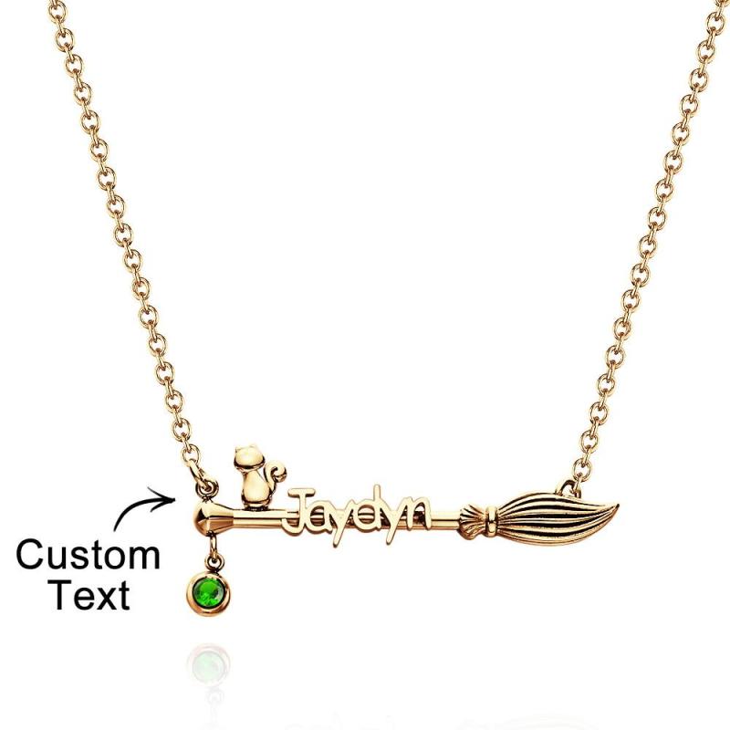 Broom And Cat Birthstone Necklace Personalized Name Necklace Gifts For Her