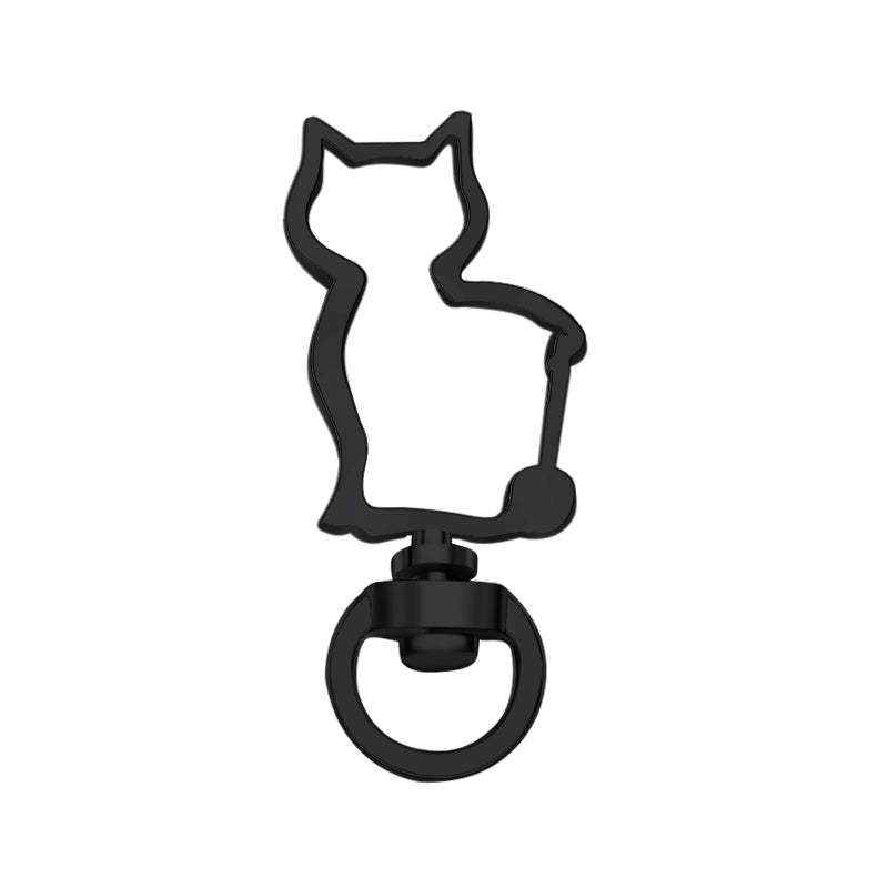Cat-Shaped Swivel Snap Hook Keychain Metal Spring Snap Key Ring Black