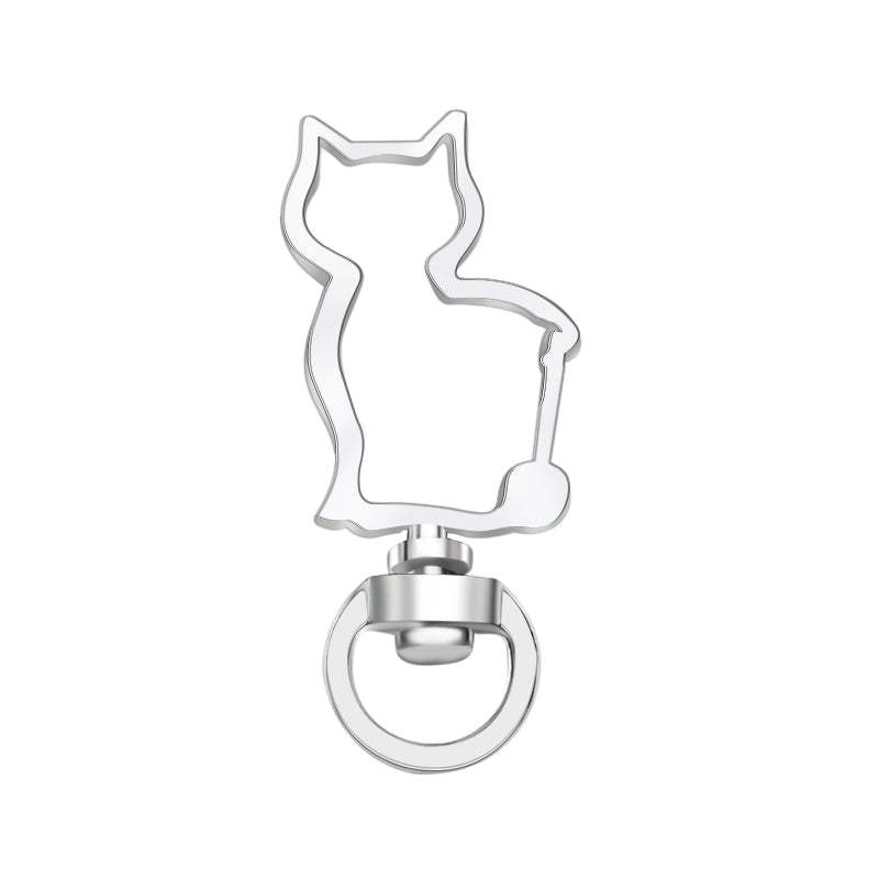 Cat-Shaped Swivel Snap Hook Keychain Metal Spring Snap Key Ring Silver