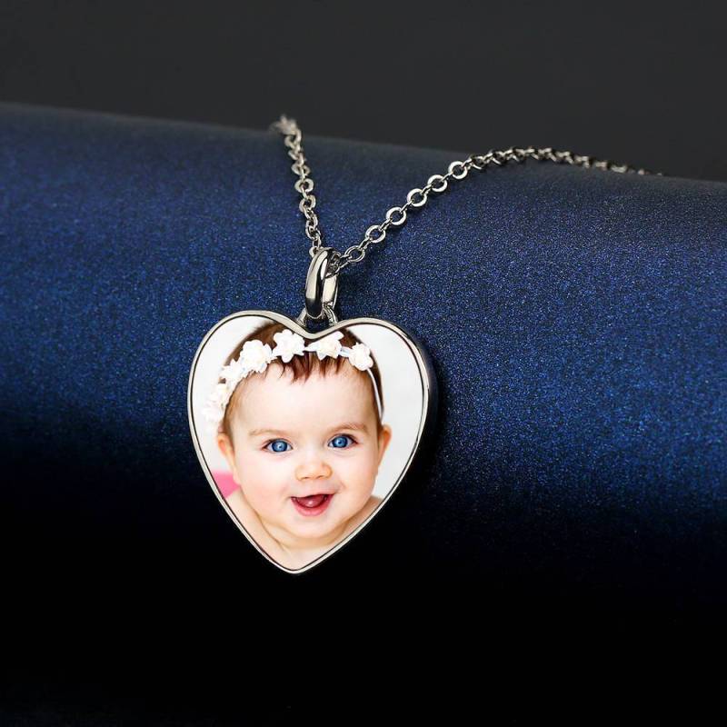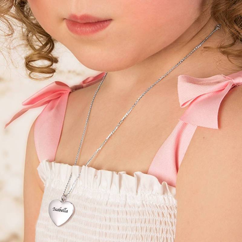 Children S Heart Photo Necklace With Engraving Platinum Plated