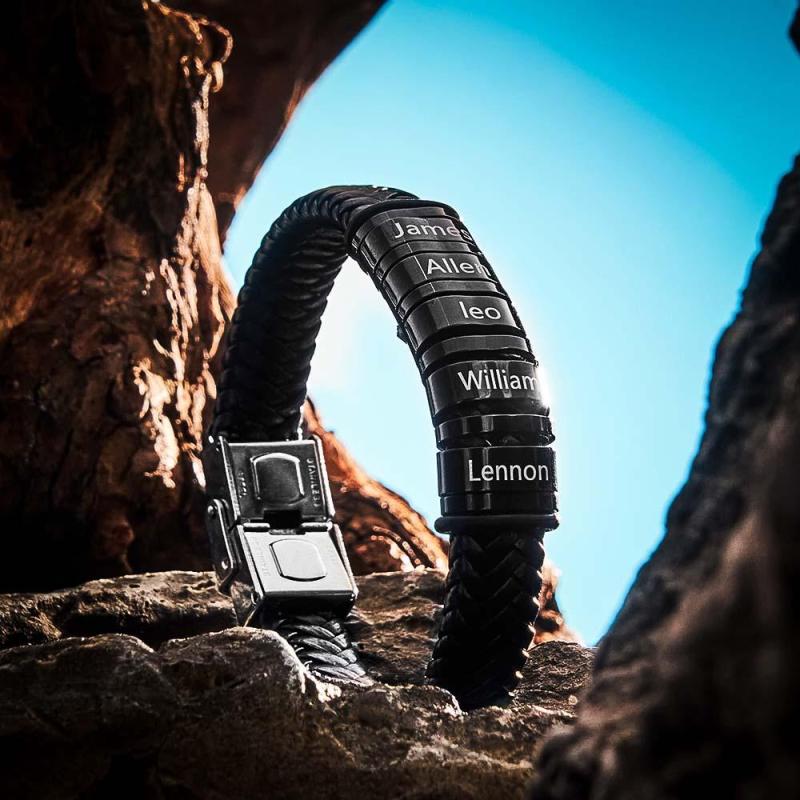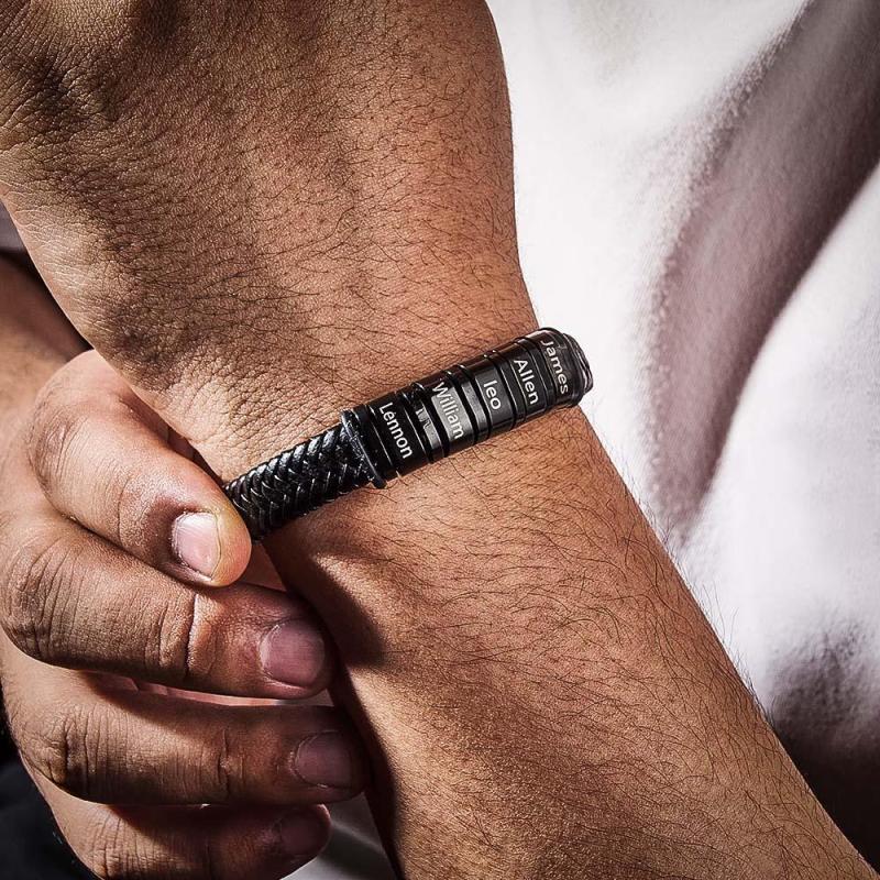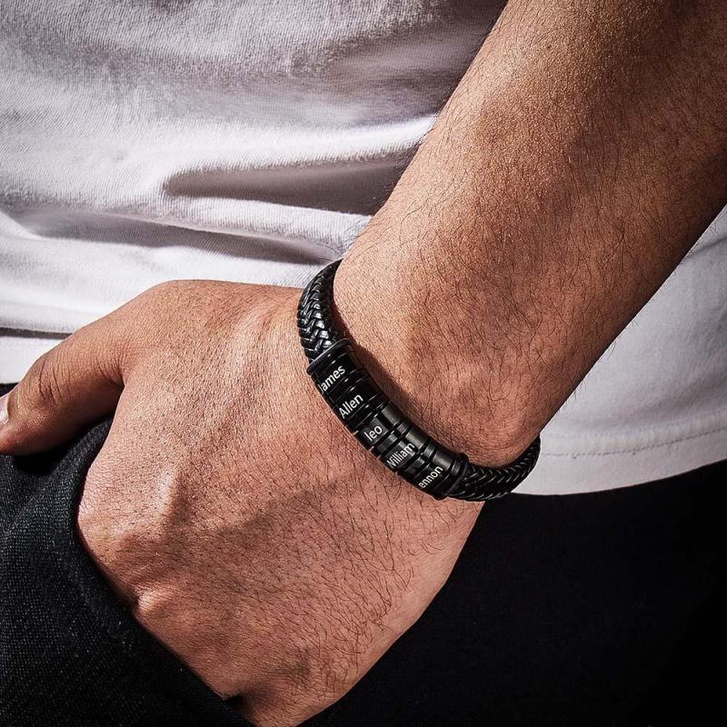 Christmas Gift Personalized Bracelet For Men, Personalized Gift For Dad Name Black Bracelet