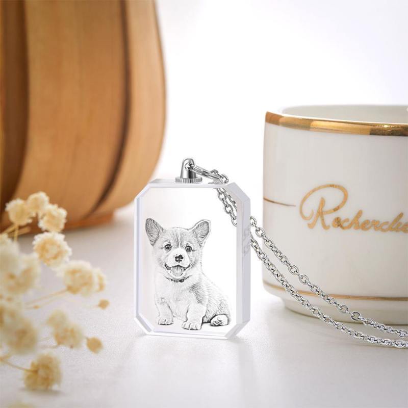 Crystal Photo Necklace Laser Etched Crystal Necklace Silver Color Chain Gifts Ideas Cute Pet