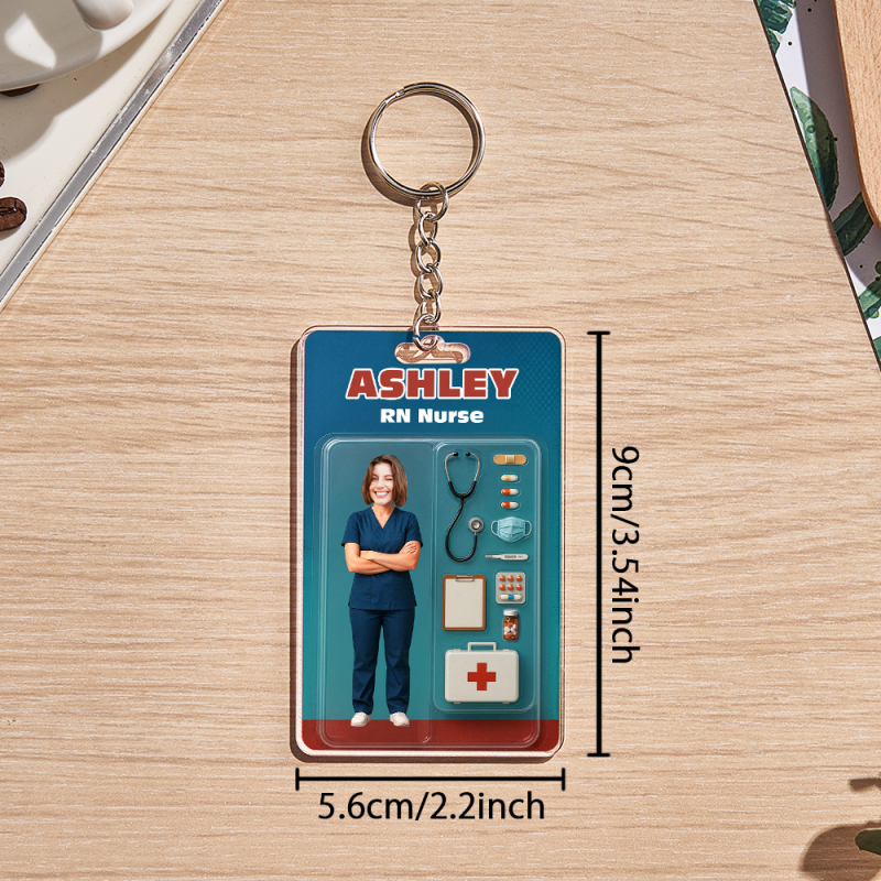 Custom 3D Effect Action Figure Customizable Head Packaging Toy Box Style Art Gift Personalized Acrylic Keychain Nurses Day Gift for Nurse