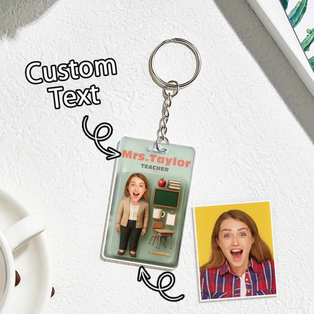 Custom 3D Effect Action Figure Customizable Head Packaging Toy Box Style Art Gift Personalized Acrylic Keychain Creative Gift for Teacher