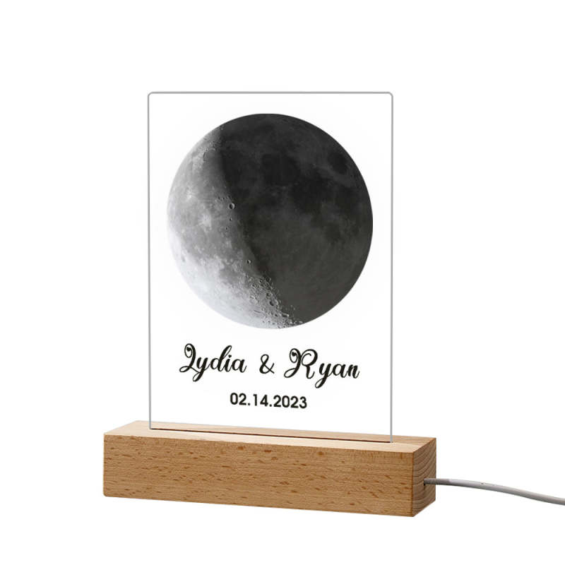 Custom Acrylic Night Light Keychains Plaque the Moon on the Day You were Born Valentine's Day Gifts