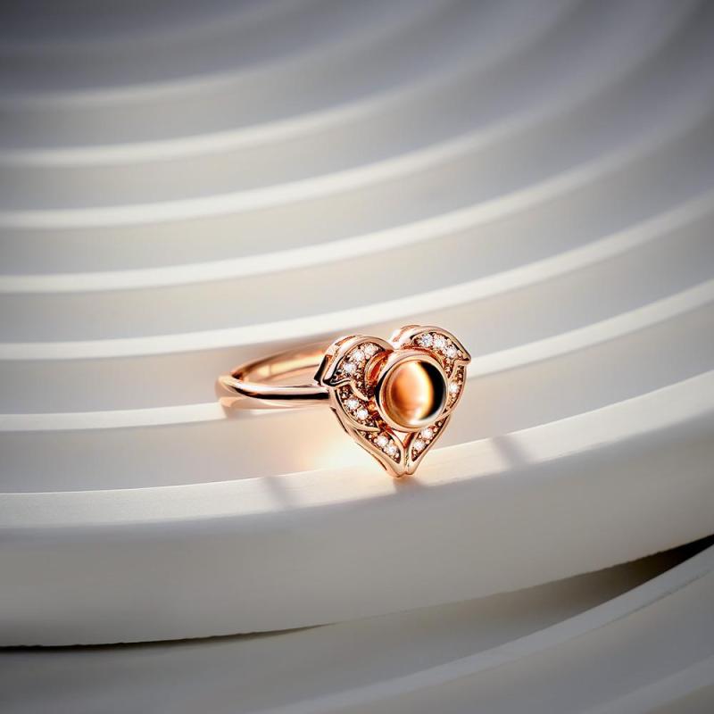 Custom Angel Wing Projection Ring Personalized Photo heart Shaped Ring for Her