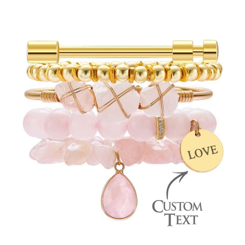 Custom Birthstone Engraved Bracelet Crystal Pink Bohemia Style Gift