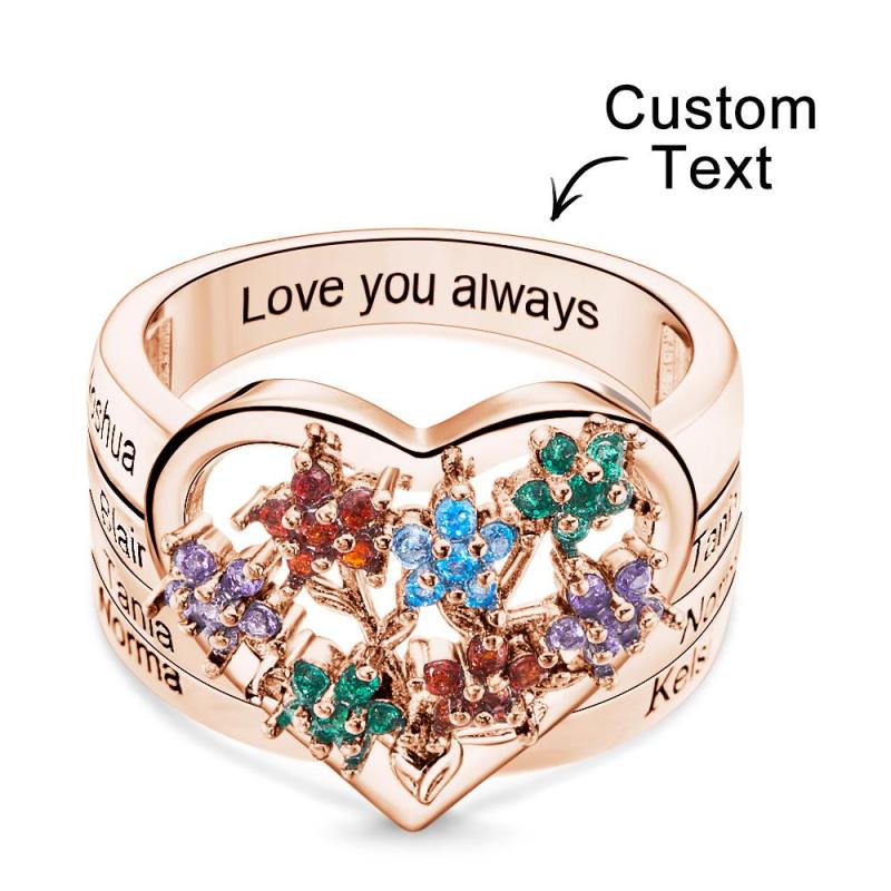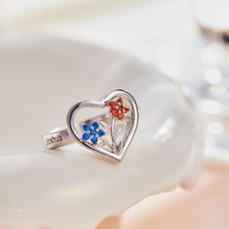 Custom Birthstone Engraved Rings Creative Flowers Rose Gold Gifts