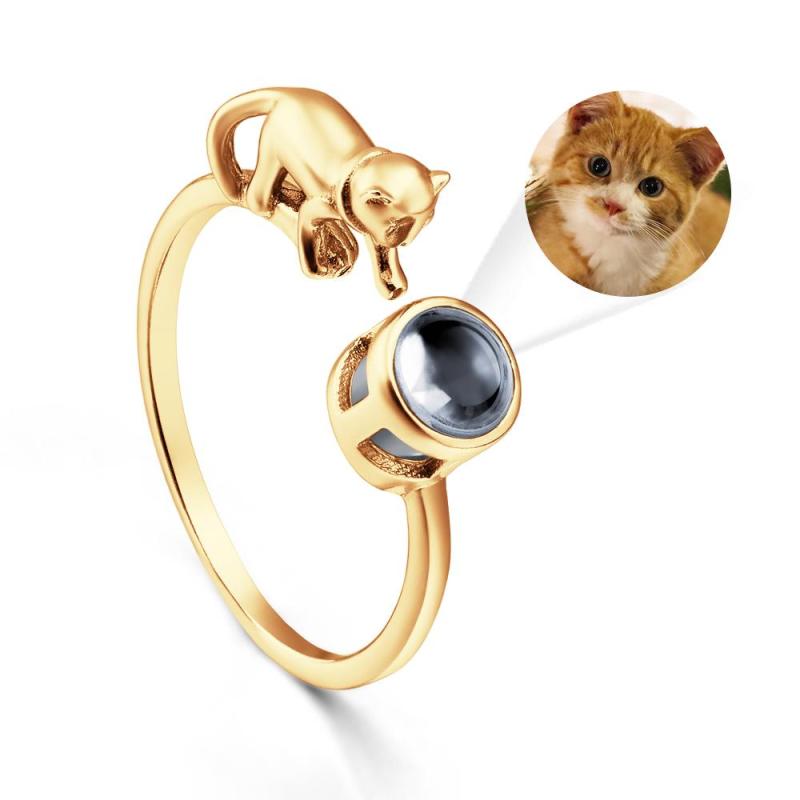 Custom Cat Photo Projection Ring Funny Pet Gift