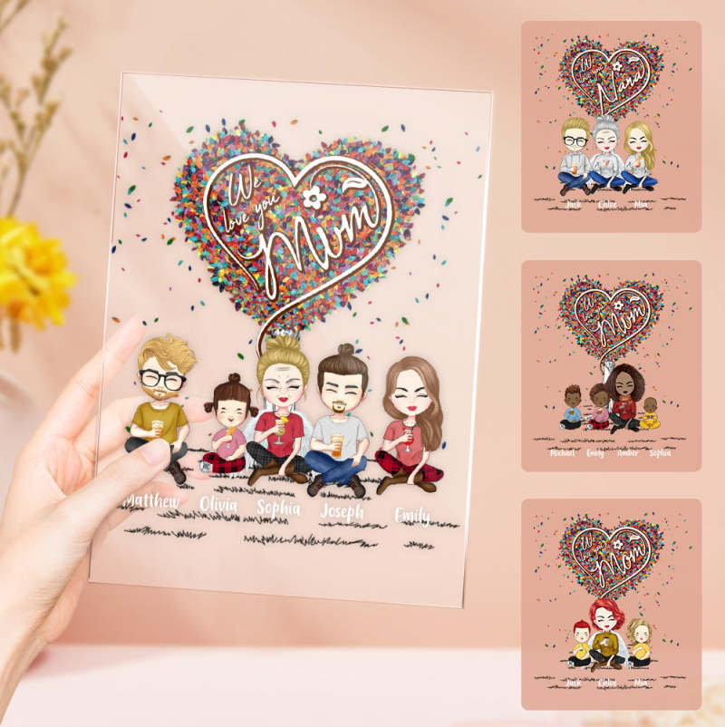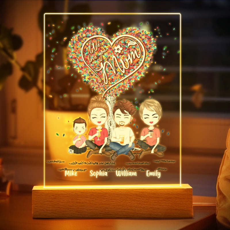 Custom Clip Art Personalized Mother and Kids Cartoon Plaque Lamp Mother's Day Gifts