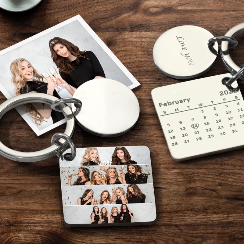 Custom Collage Photo Calendar Keychain Anniversary Wedding Gift for Her/Him 4 Colors