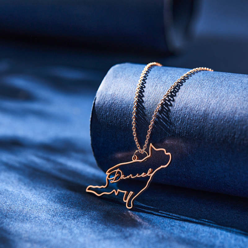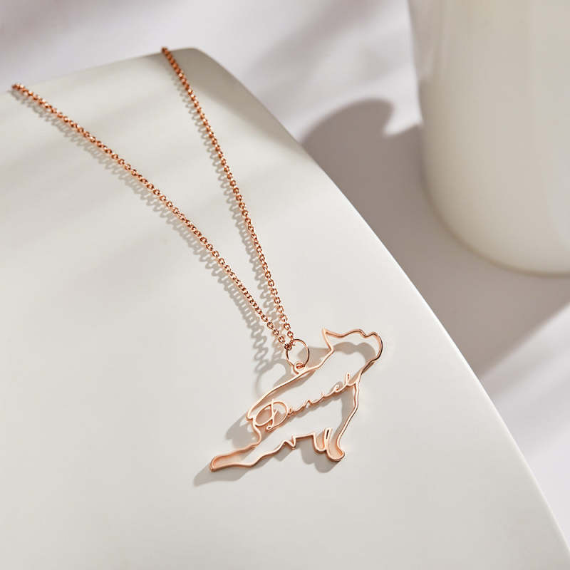Custom Dog Silhouette Outline Picture Necklace with Name Personalized Pet Photo Necklace Memorial Gift