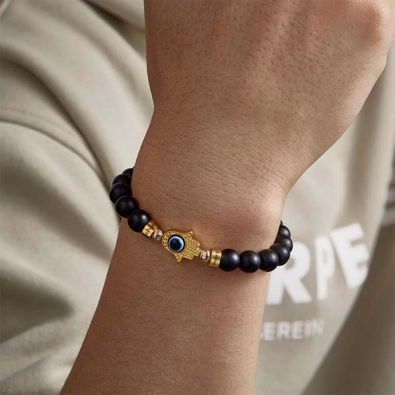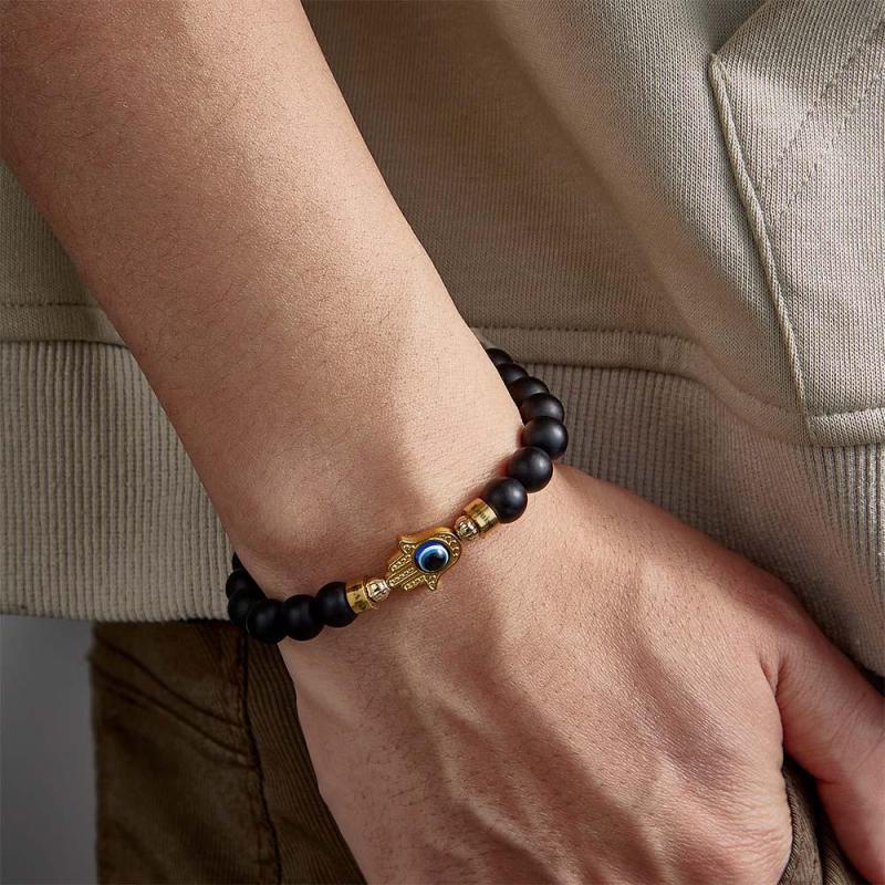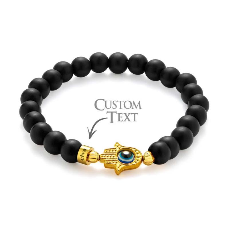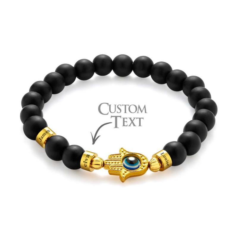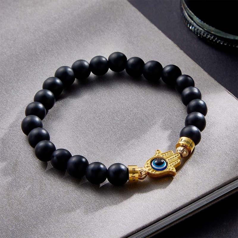 Custom Engraved Beaded Bracelet Hamsa Evil Eye Men's Amulet Bracelet for Him