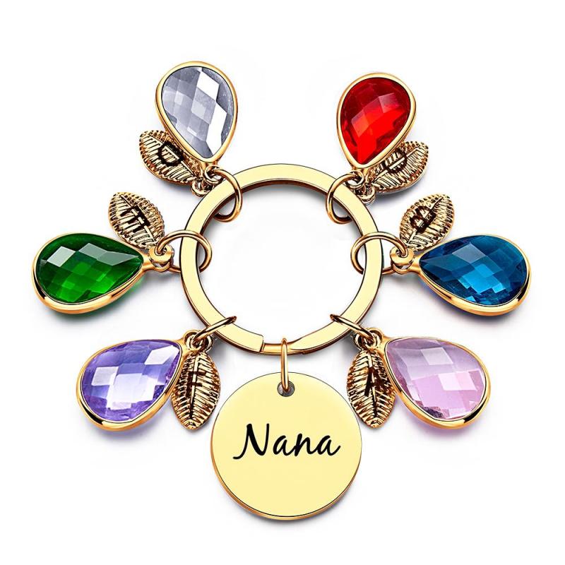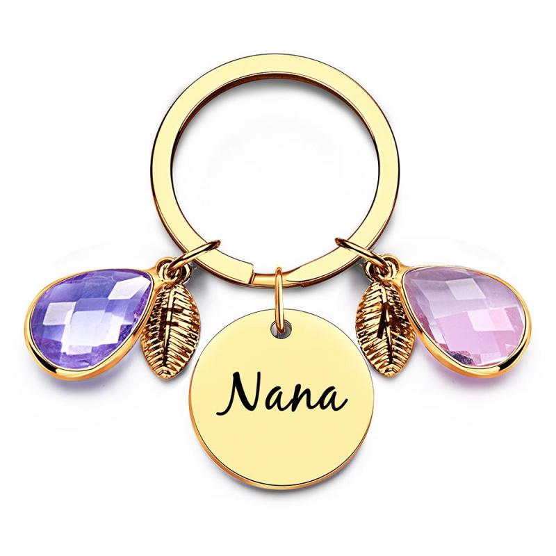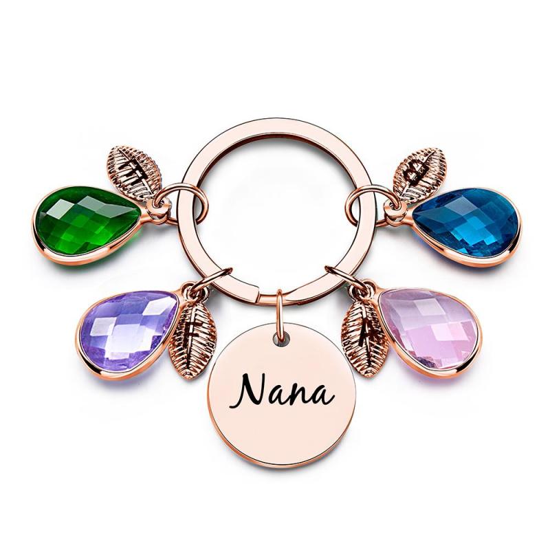 Custom Engraved Birthstone Keychain Leaf Delicate Gifts