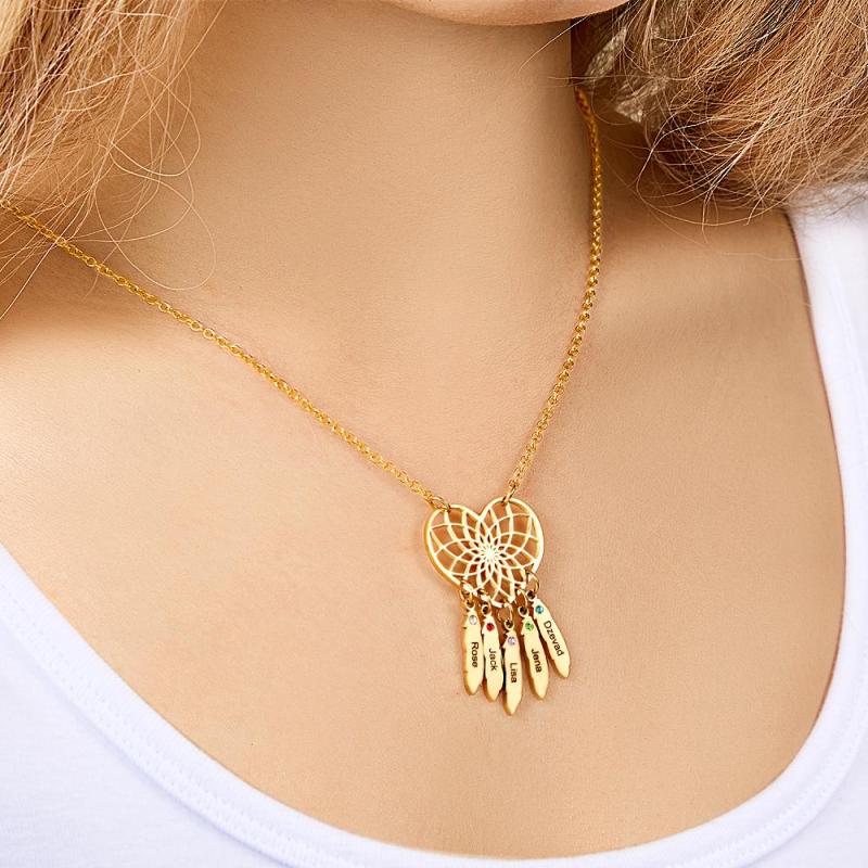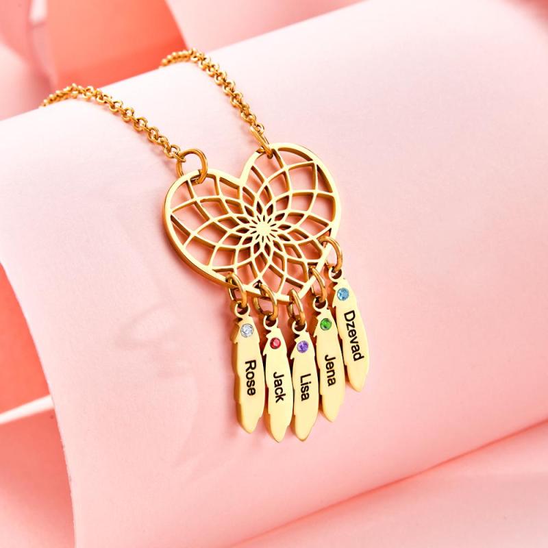 Custom Engraved Birthstone Necklace Dreamcatcher Gift for Her