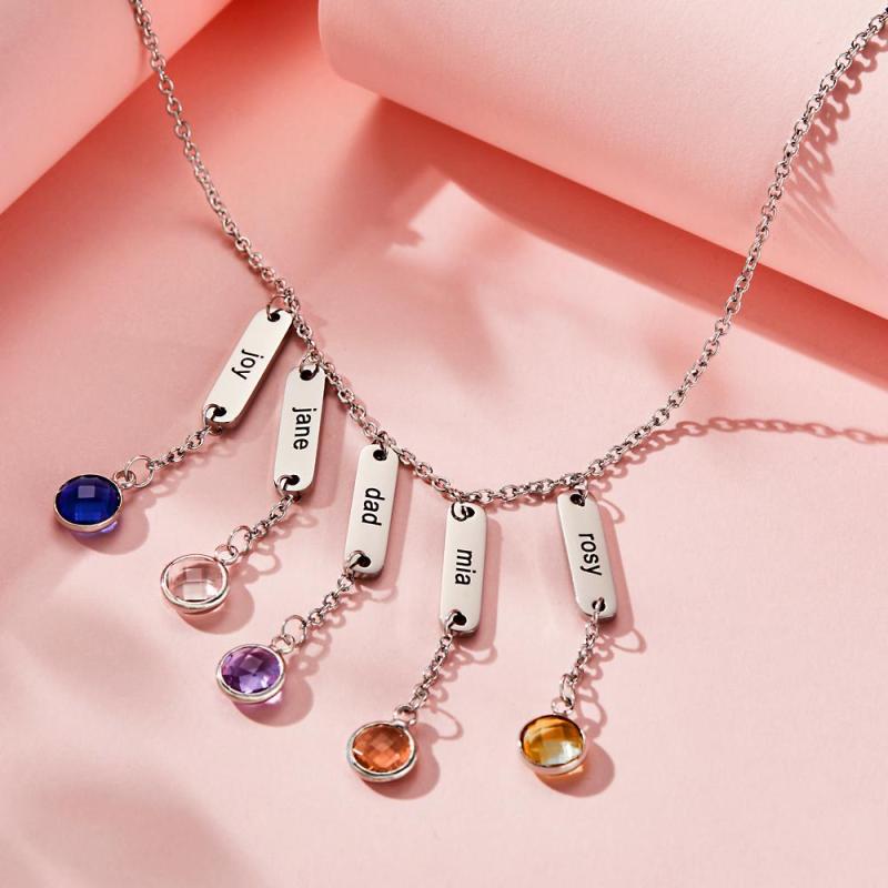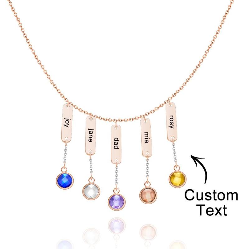 Custom Engraved Birthstone Necklace Simple Pendant Gifts