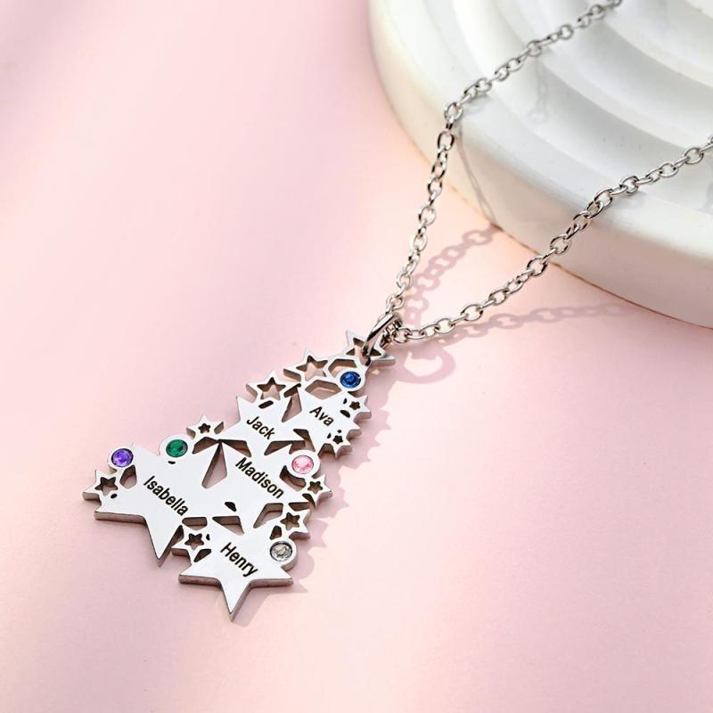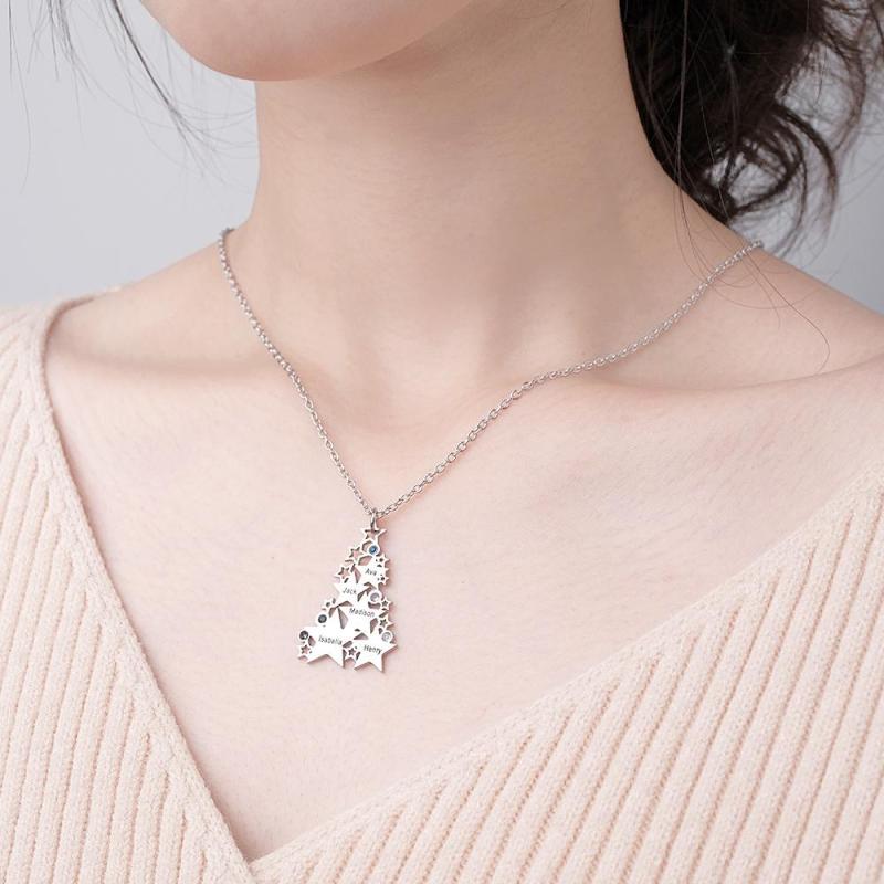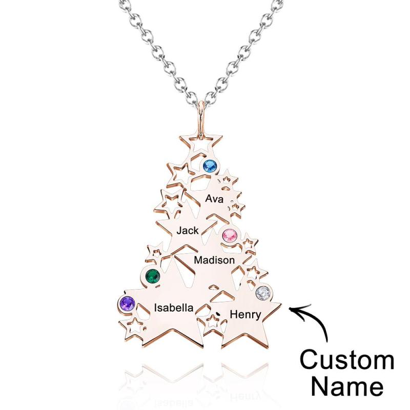 Custom Engraved Birthstone Necklace Star Christmas Tree Gifts