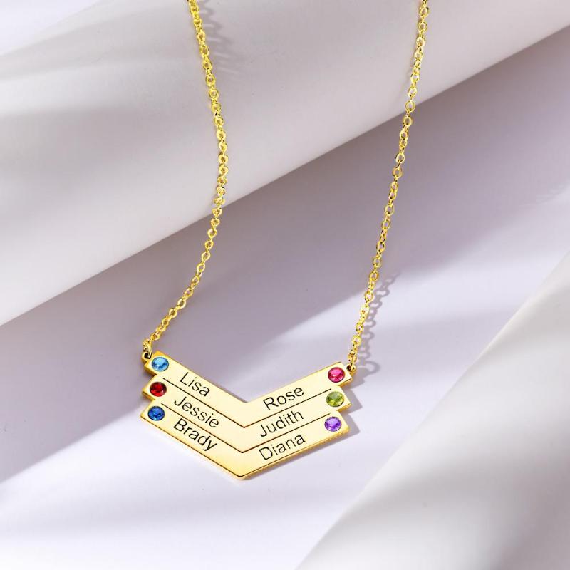 Custom Engraved Birthstone Necklace Triangle Simple Gifts for Her