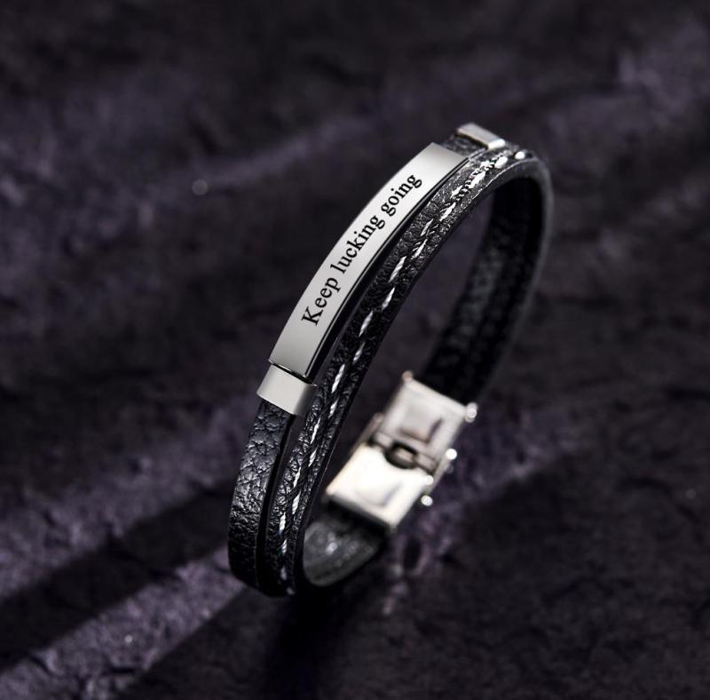 Custom Engraved Bracelet Creative Punk Leather Couples Gifts
