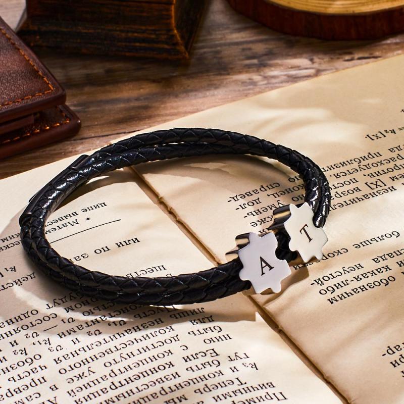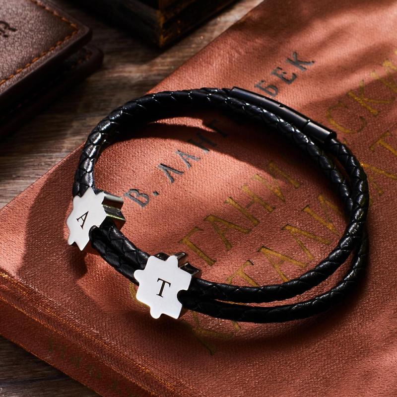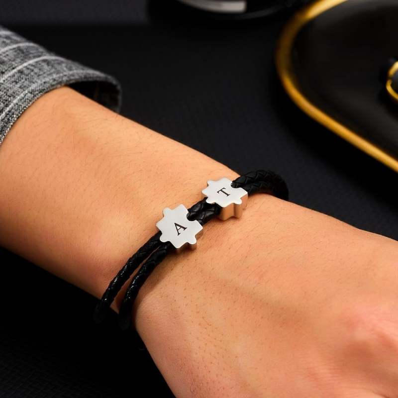 Custom Engraved Bracelet Puzzle Shape Custom Name for Him