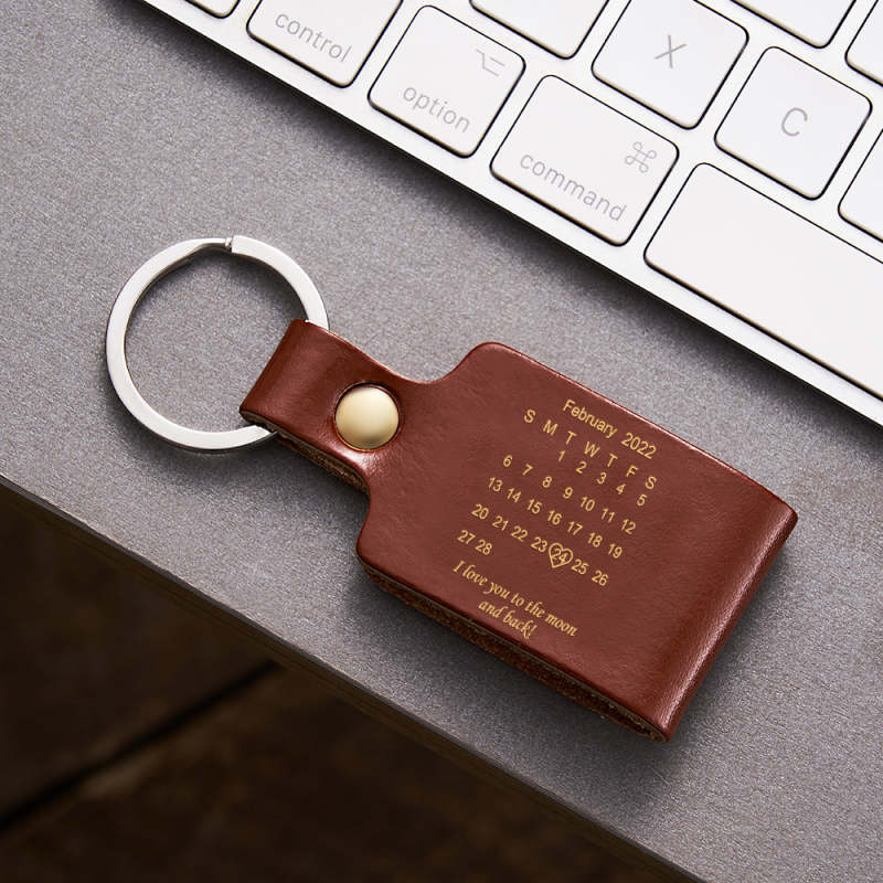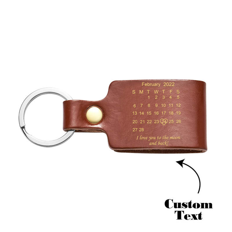 Custom Engraved Calendar Date Keychain Leather Keyring Anniversary Gift