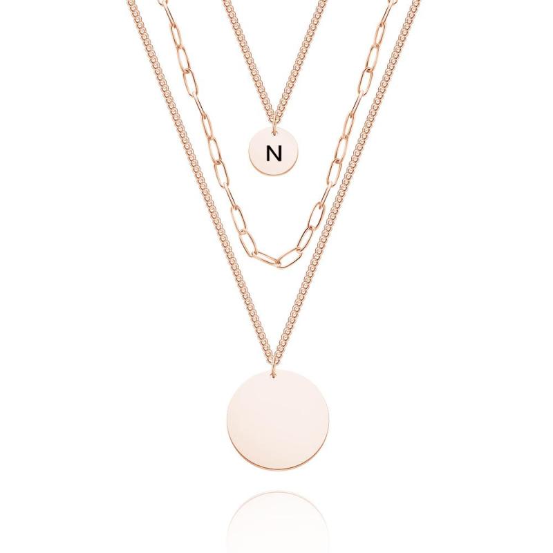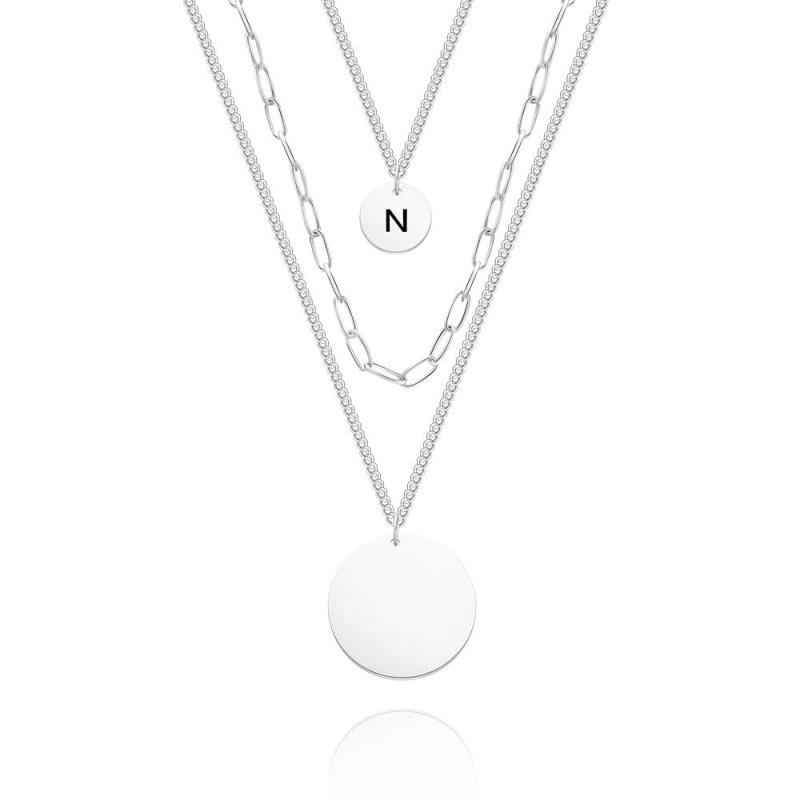 Custom Engraved Disc Necklace Triple Strand Chain Link Coin Necklace Layered Necklace