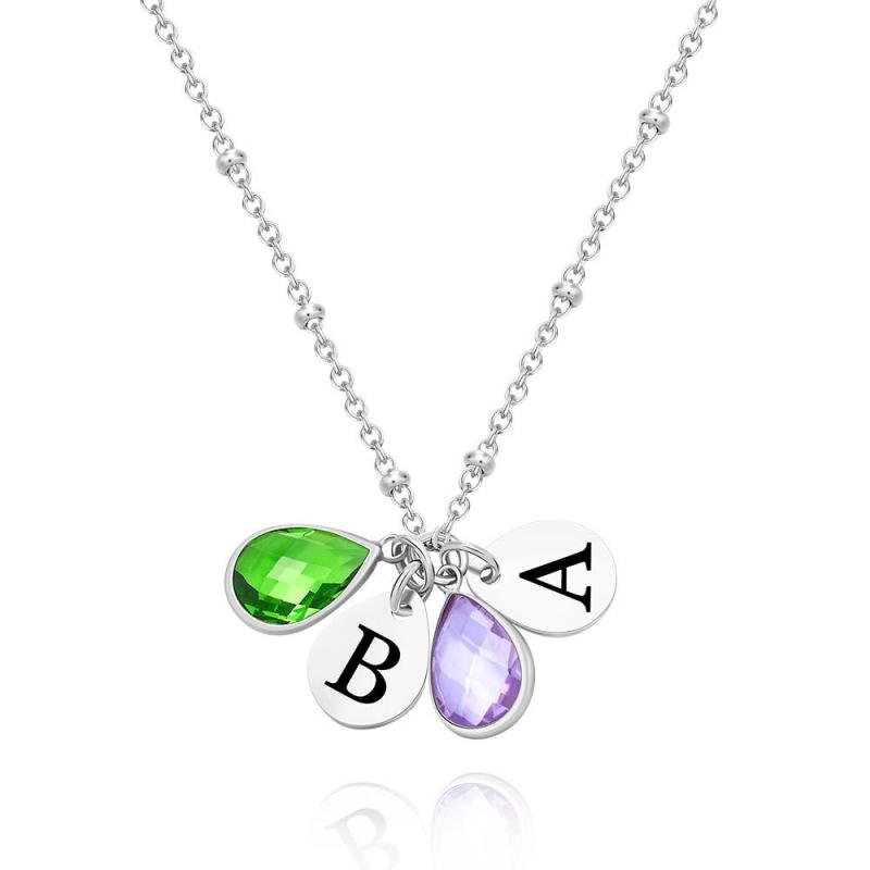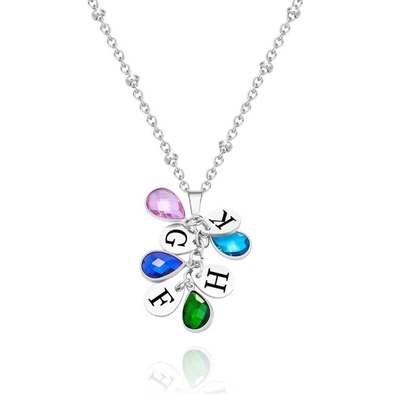 Custom Engraved For Diamond Multiple Birthstone Necklaces Gift For Her