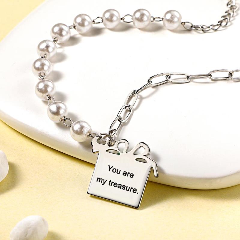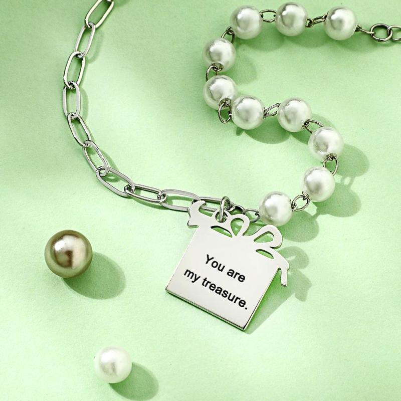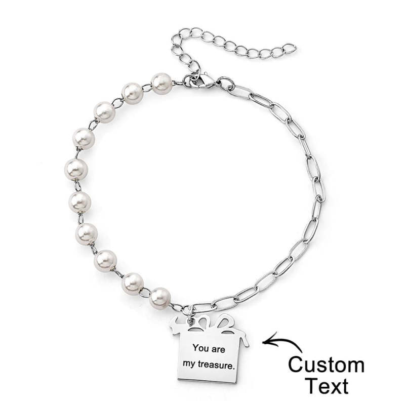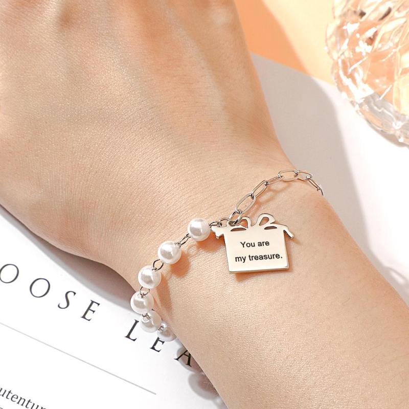 Custom Engraved Gift Box Bracelet With White Beads Fashion Bracelet Gift For Her