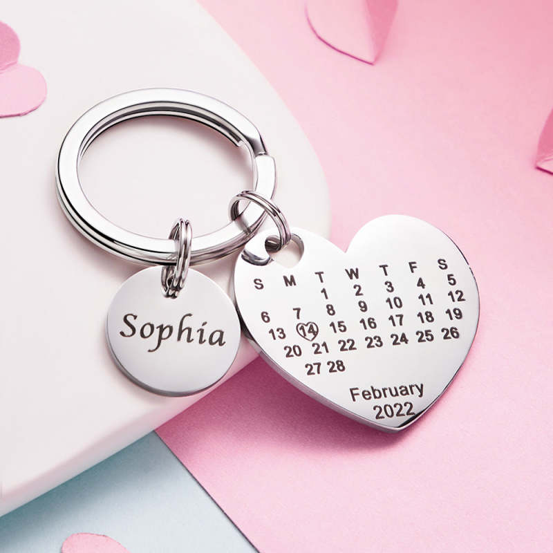 Custom Engraved Heart Calendar Keychain Save The Date Keychain Valentine's Day Gift