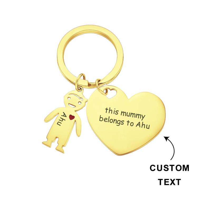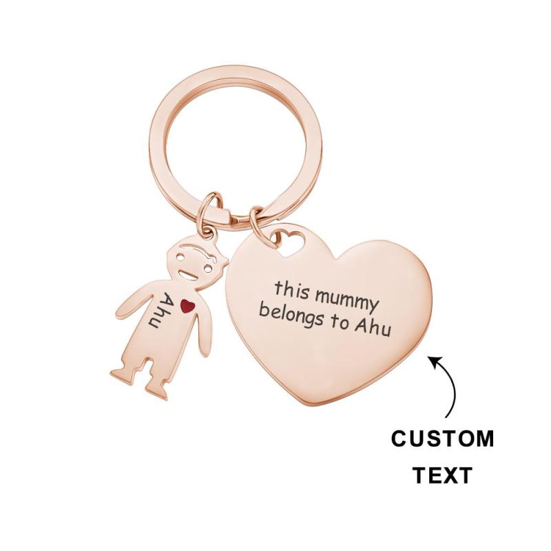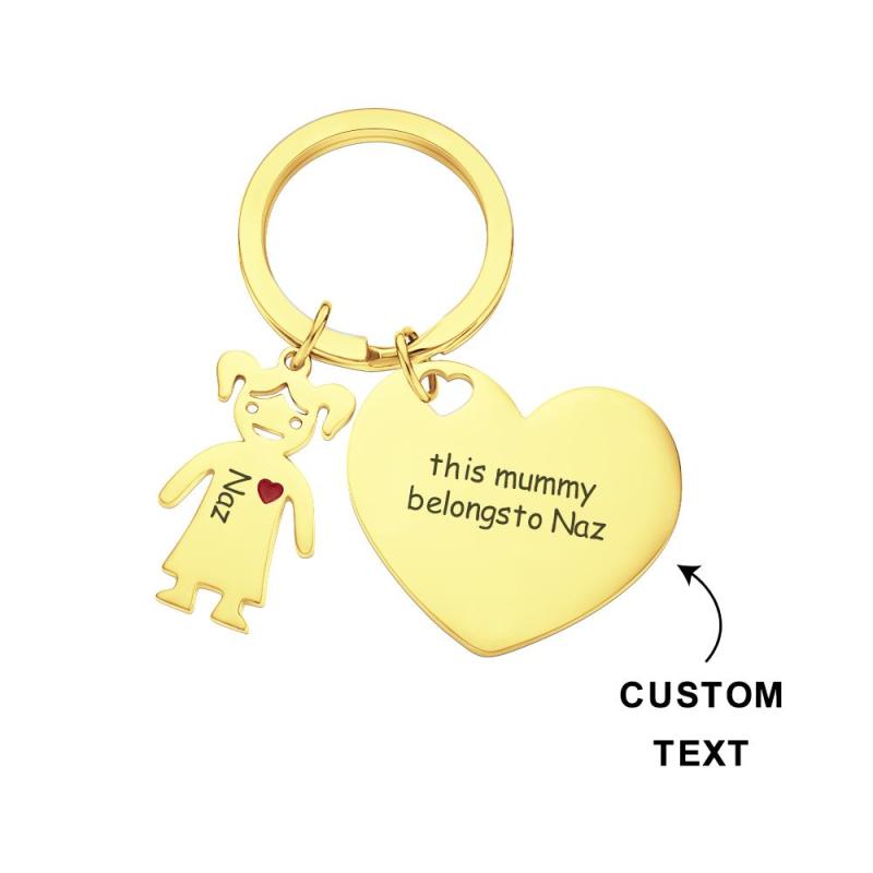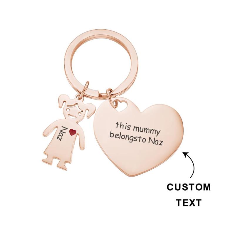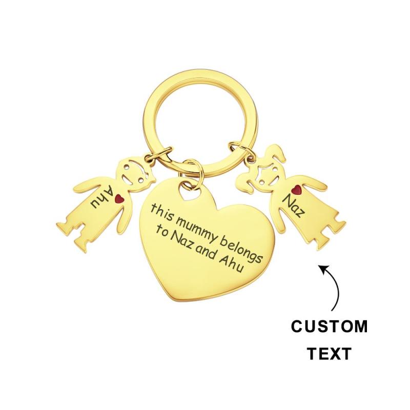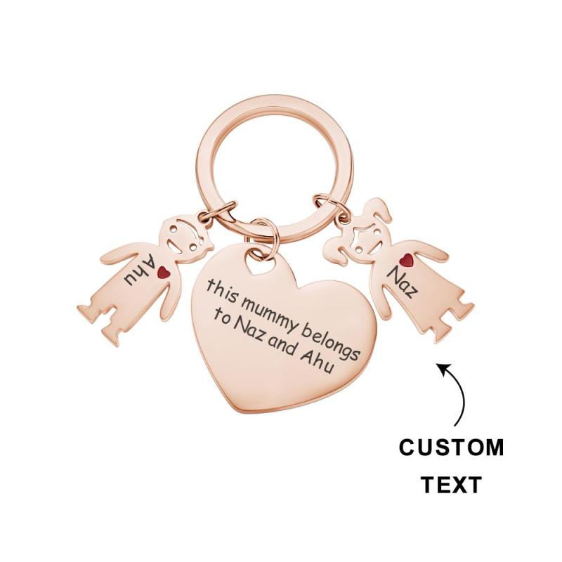 Custom Engraved Heart Keychain with Children Mother's Day Gifts