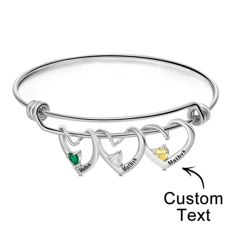 Custom Engraved Heart-Shaped Birthstone Bracelet Personalized Elegant Bracelet