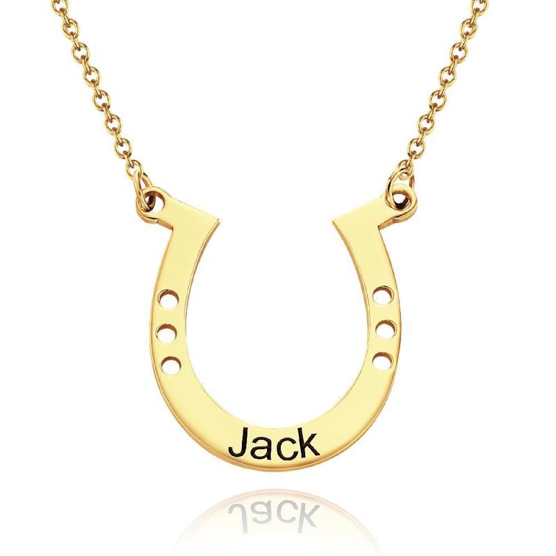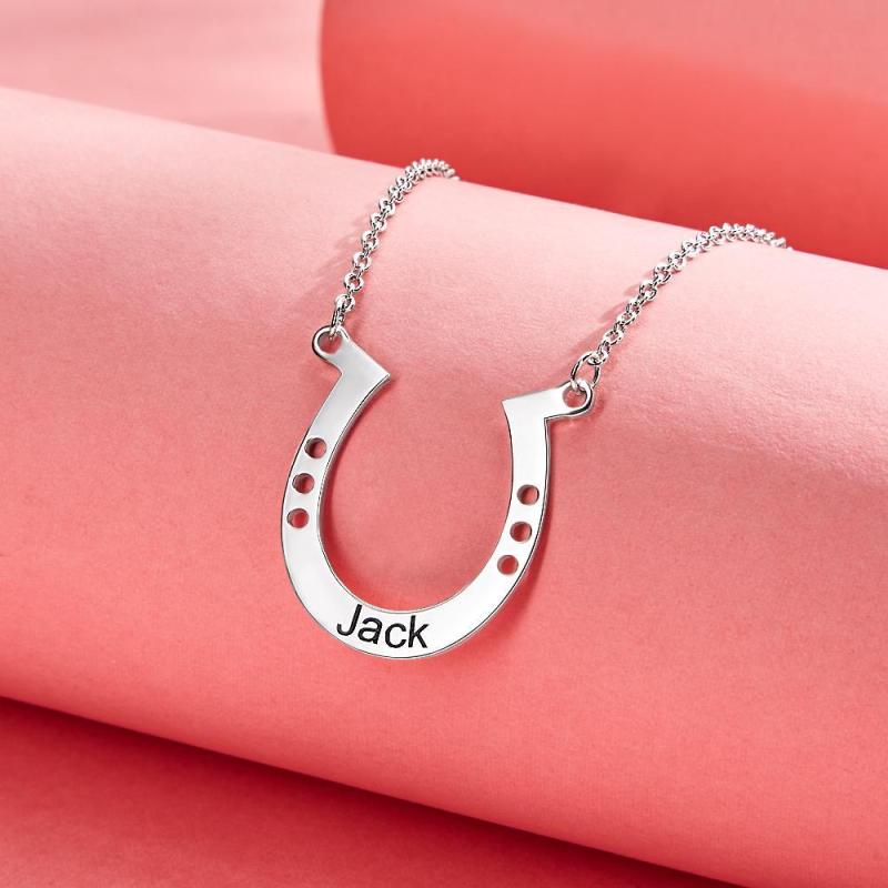 Custom Engraved Horseshoe Necklace Name Necklace Horseshoe Pendant
