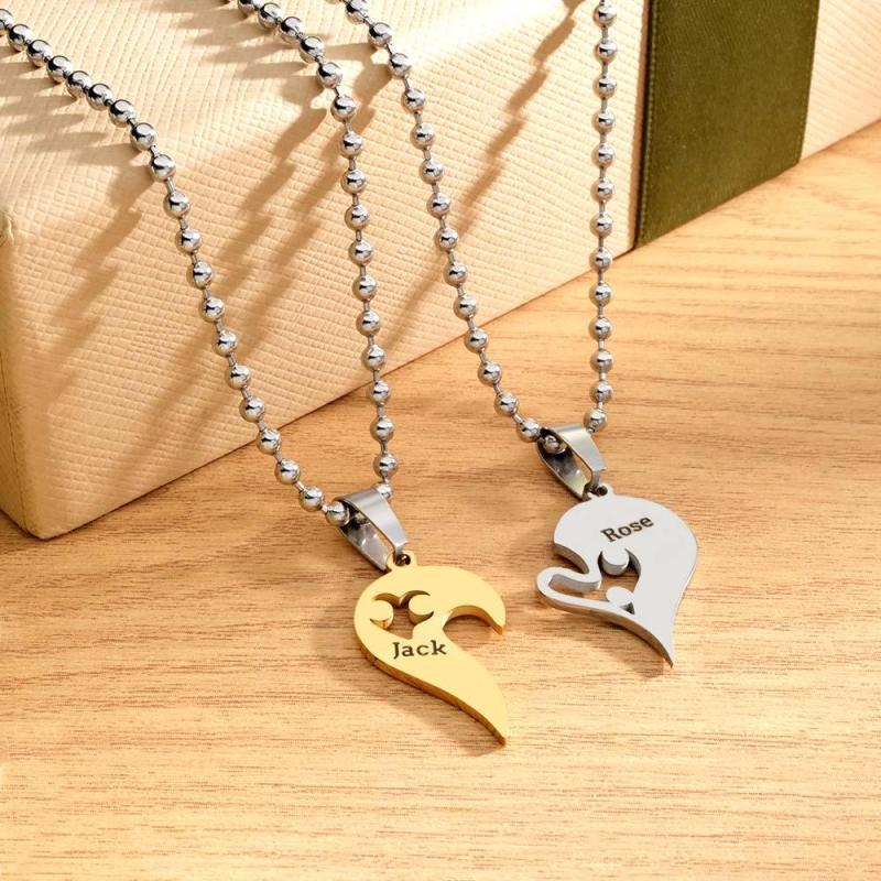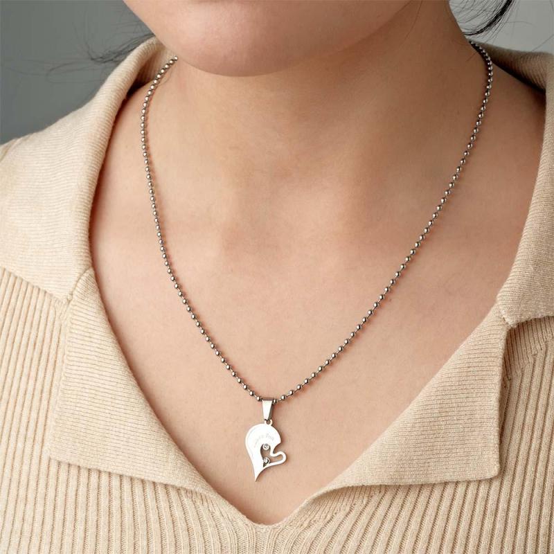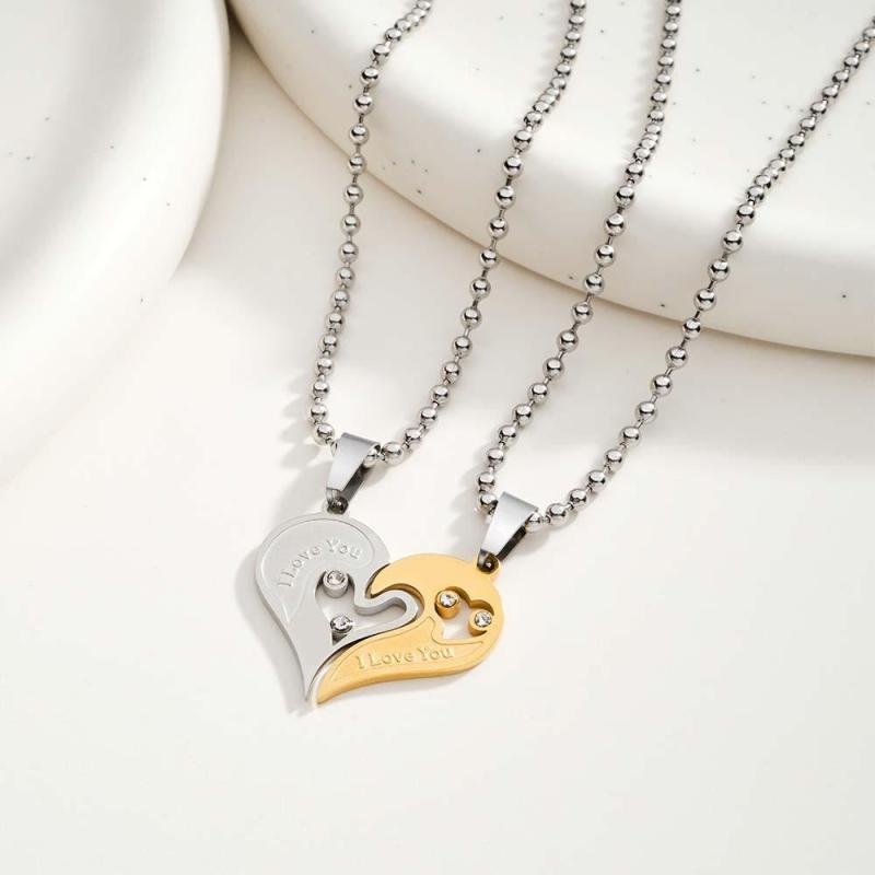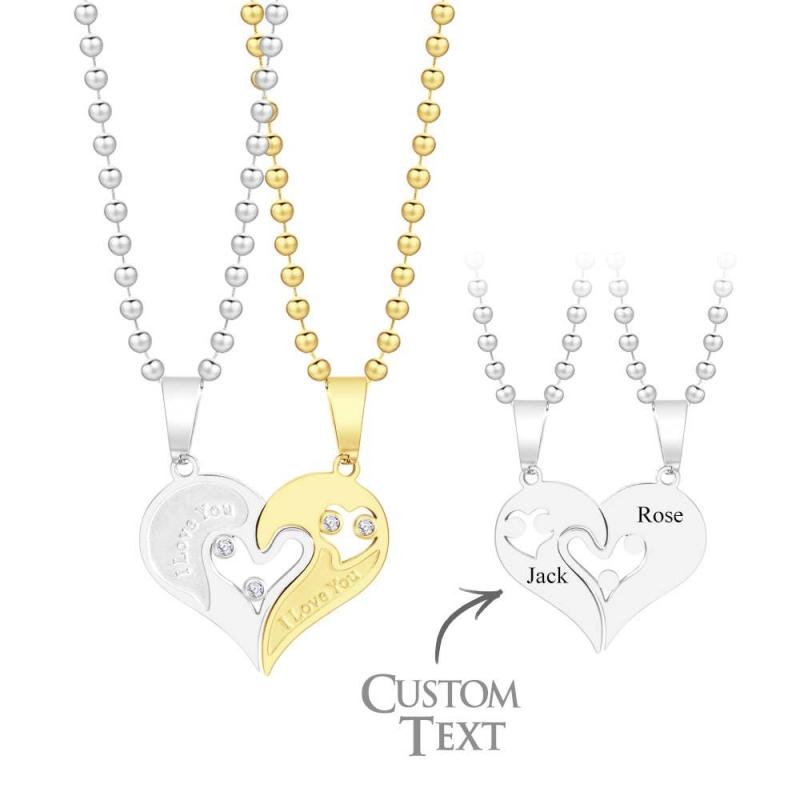 Custom Engraved I Love You Rhinestone Necklace Set Gorgeous Love Heart Necklace For Couples