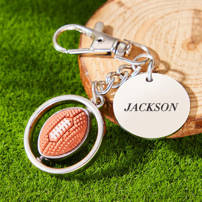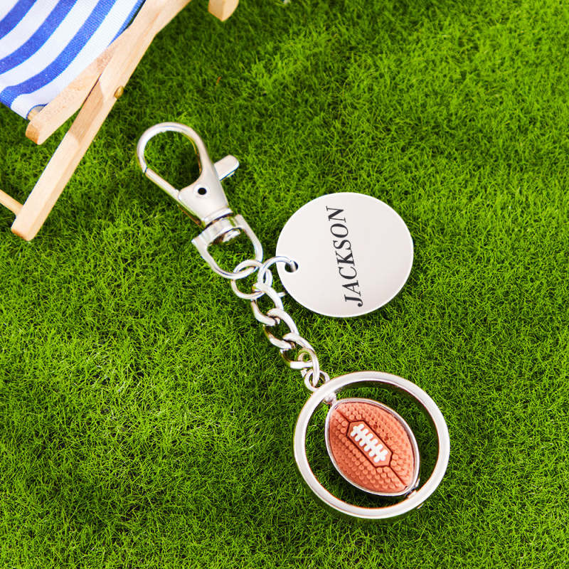 Custom Engraved Keychain American Football Rotatable Pendant Sports Lover Gifts