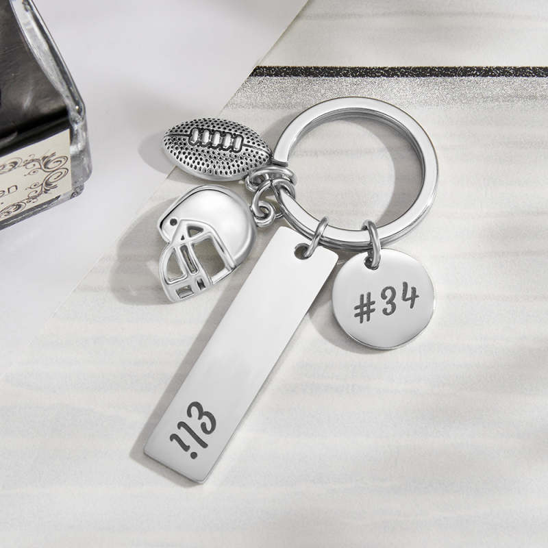 Custom Engraved Keychain Hand Stamped Football Keychain Creative Gift