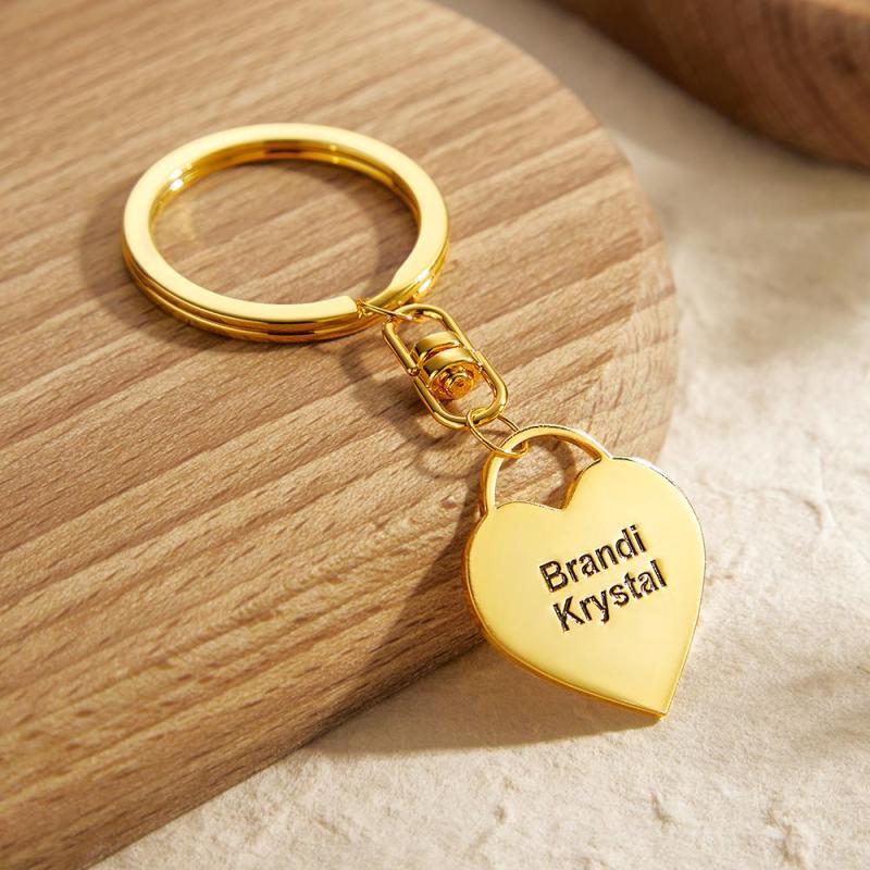 Custom Engraved Keychain Love Lock Metal Couple Gifts