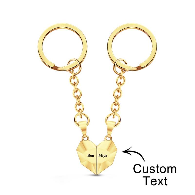 Custom Engraved Keychain Magnetic Matching Heart Keychains Gift for Couple