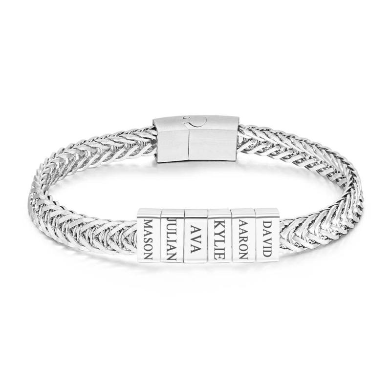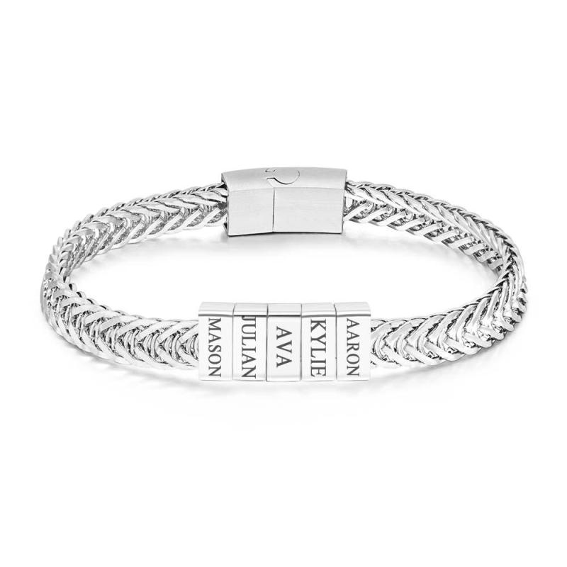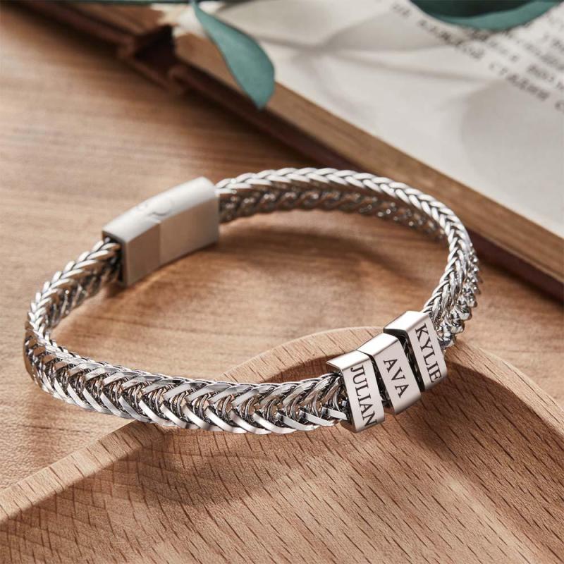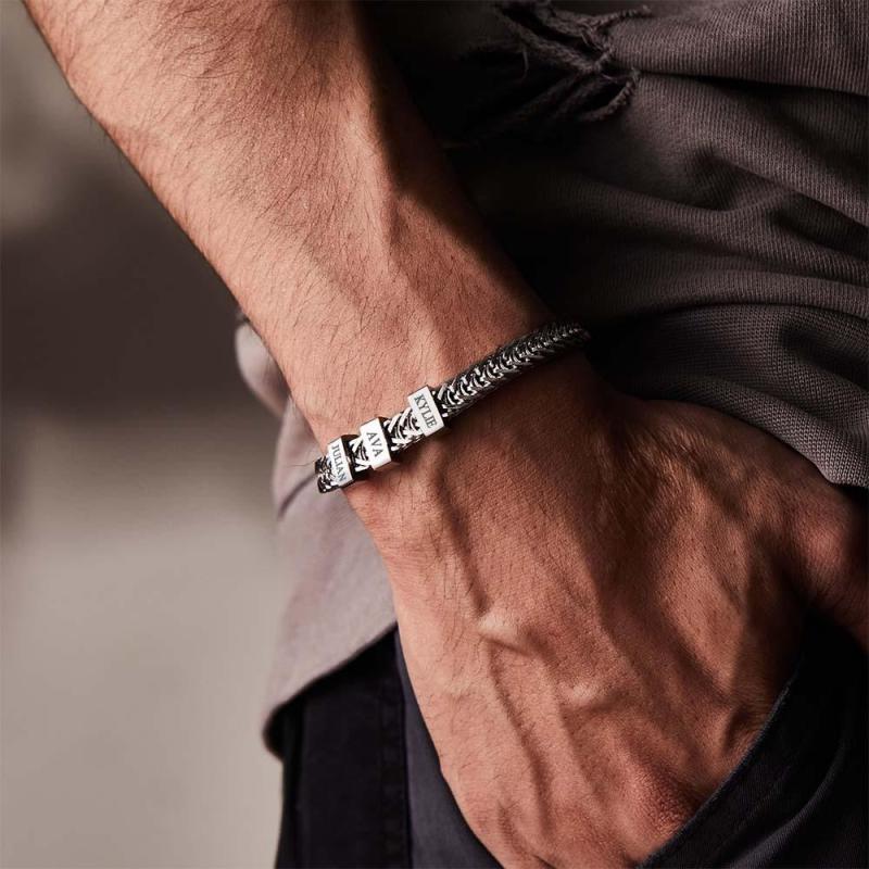 Custom Engraved Men's Beads Bracelet Personalized Elements Wide Bracelet Father's Day Gift