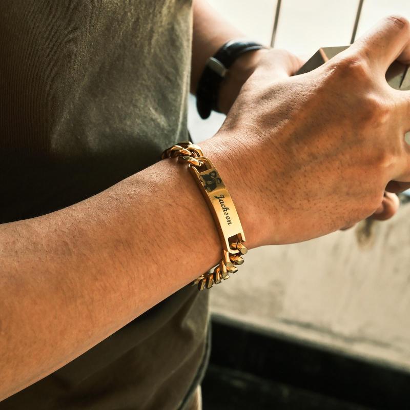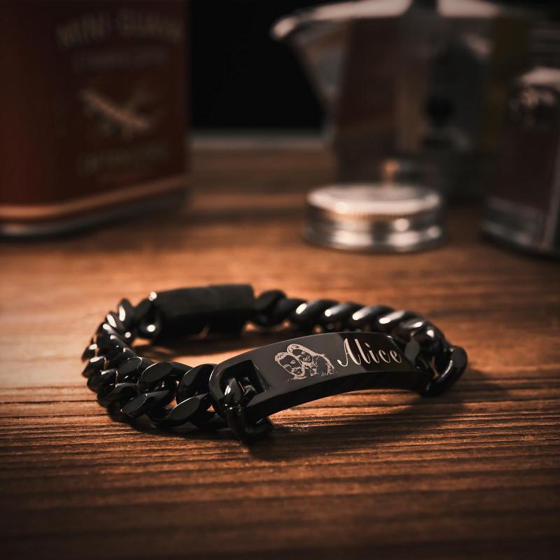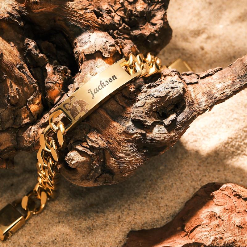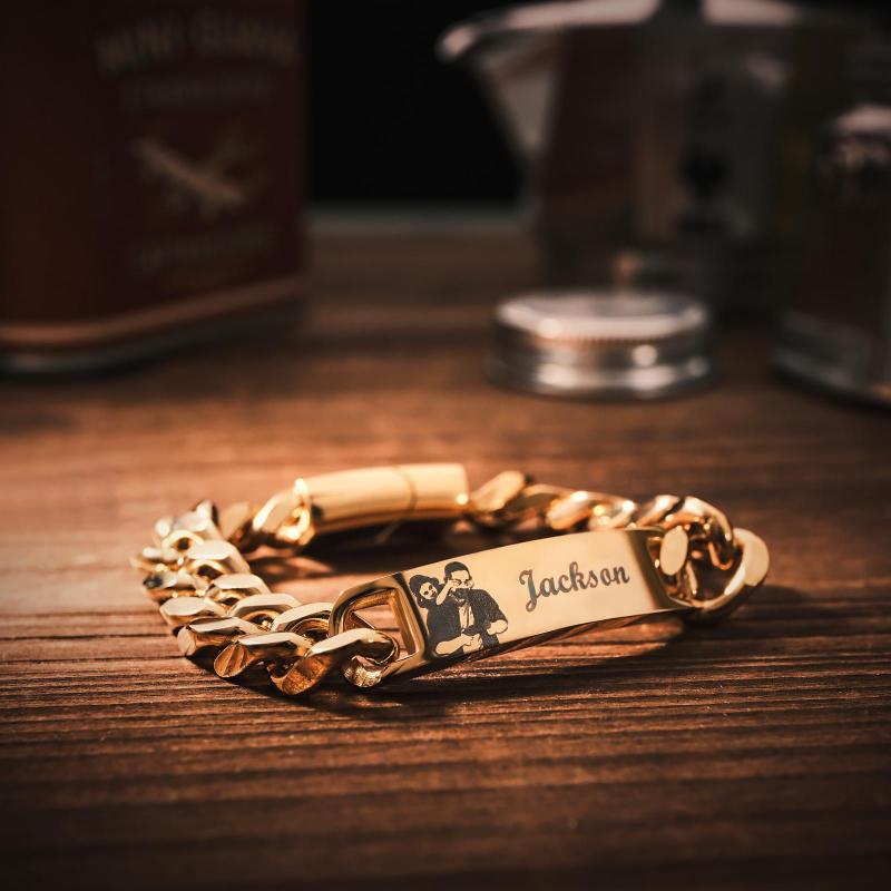 Custom Engraved Men's Bracelet Stainless Steel Photo Vintage Bracelet Jewelry For Dad