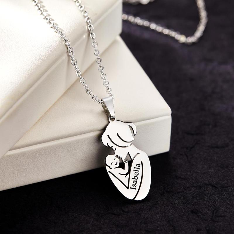 Custom Engraved Mother Baby Necklace Personalized Family Jewelry Gifts for Mother
