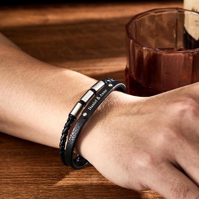 Custom Engraved Multy Layer Retro Style Men's Leather Bracelet