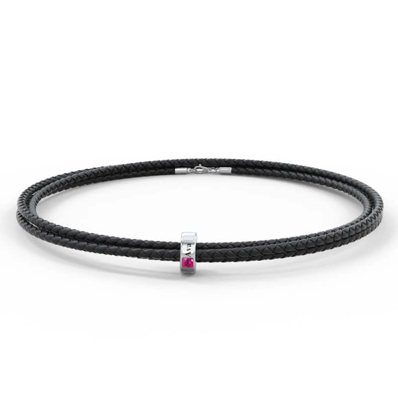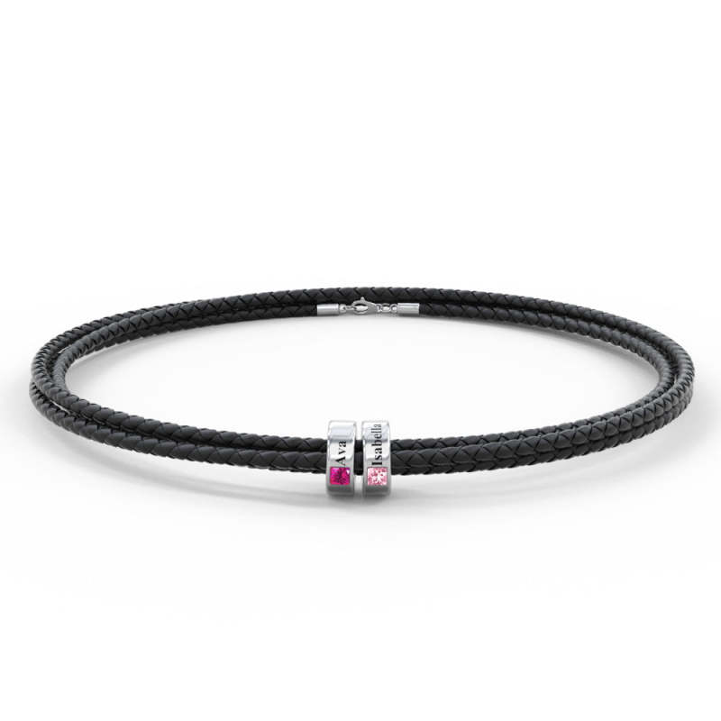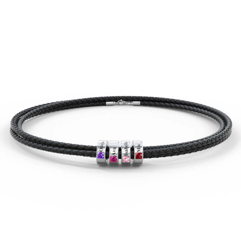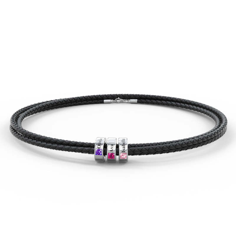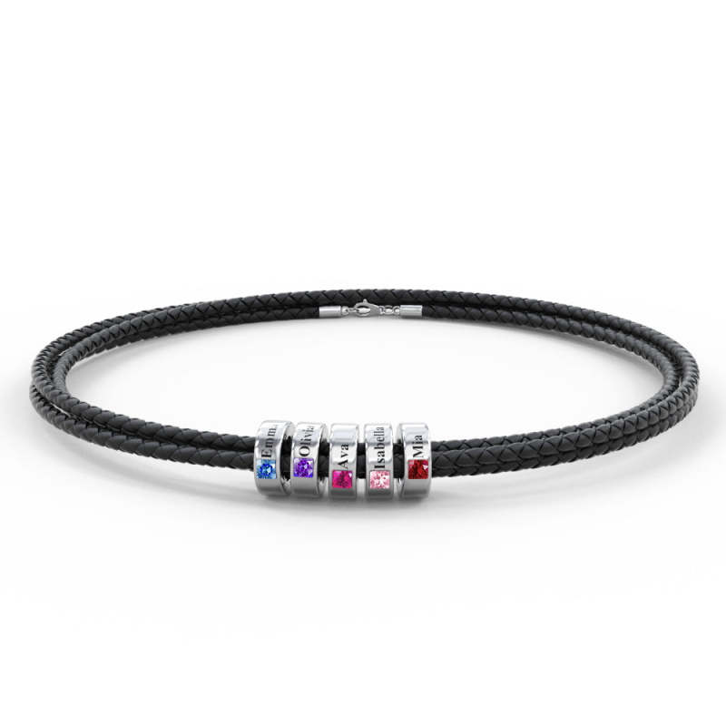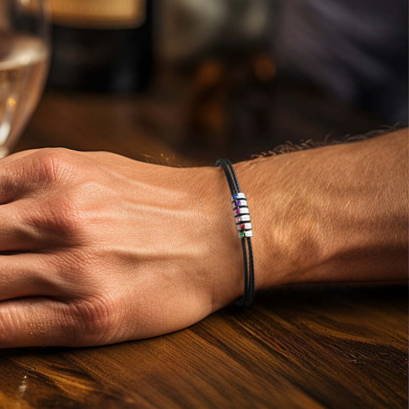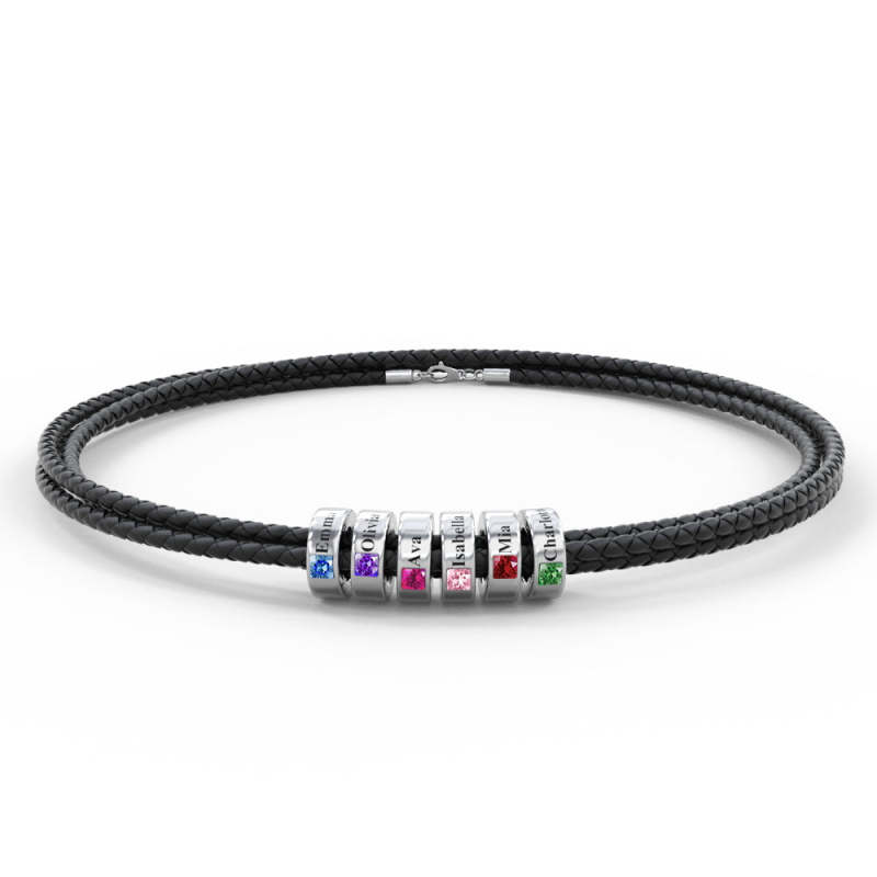 Custom Engraved Name Leather Bracelet With Birthstone Beads for Him