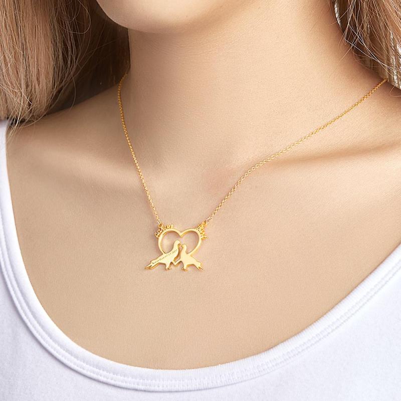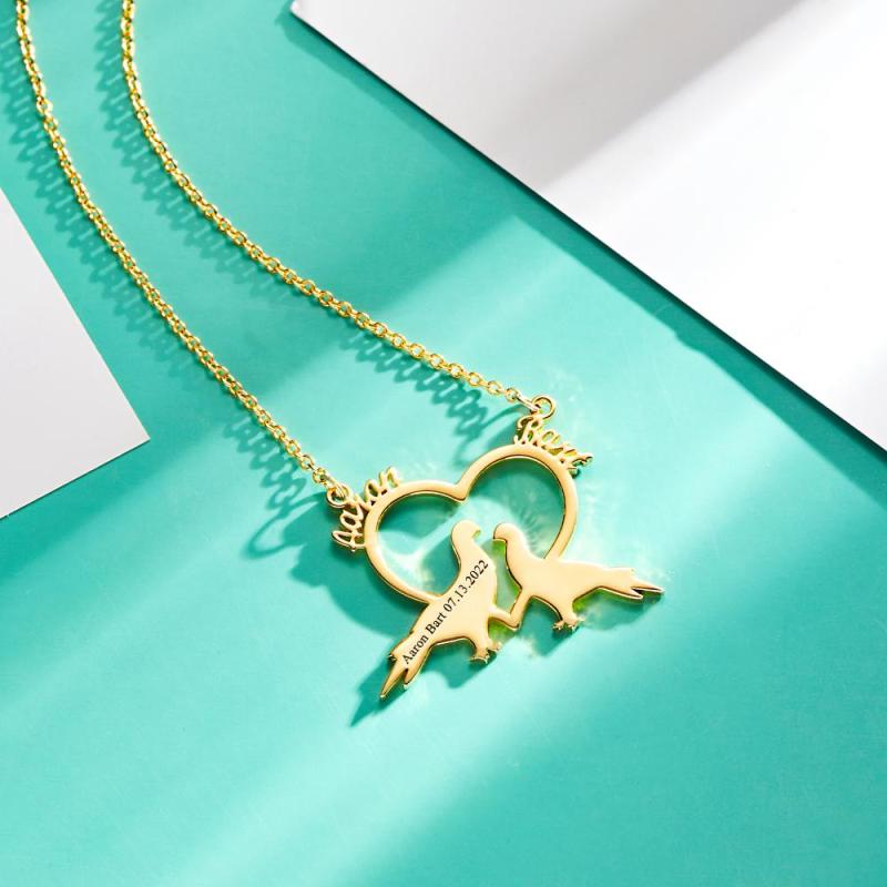 Custom Engraved Necklace Custom Name Romantic Love Birds Couple Gifts